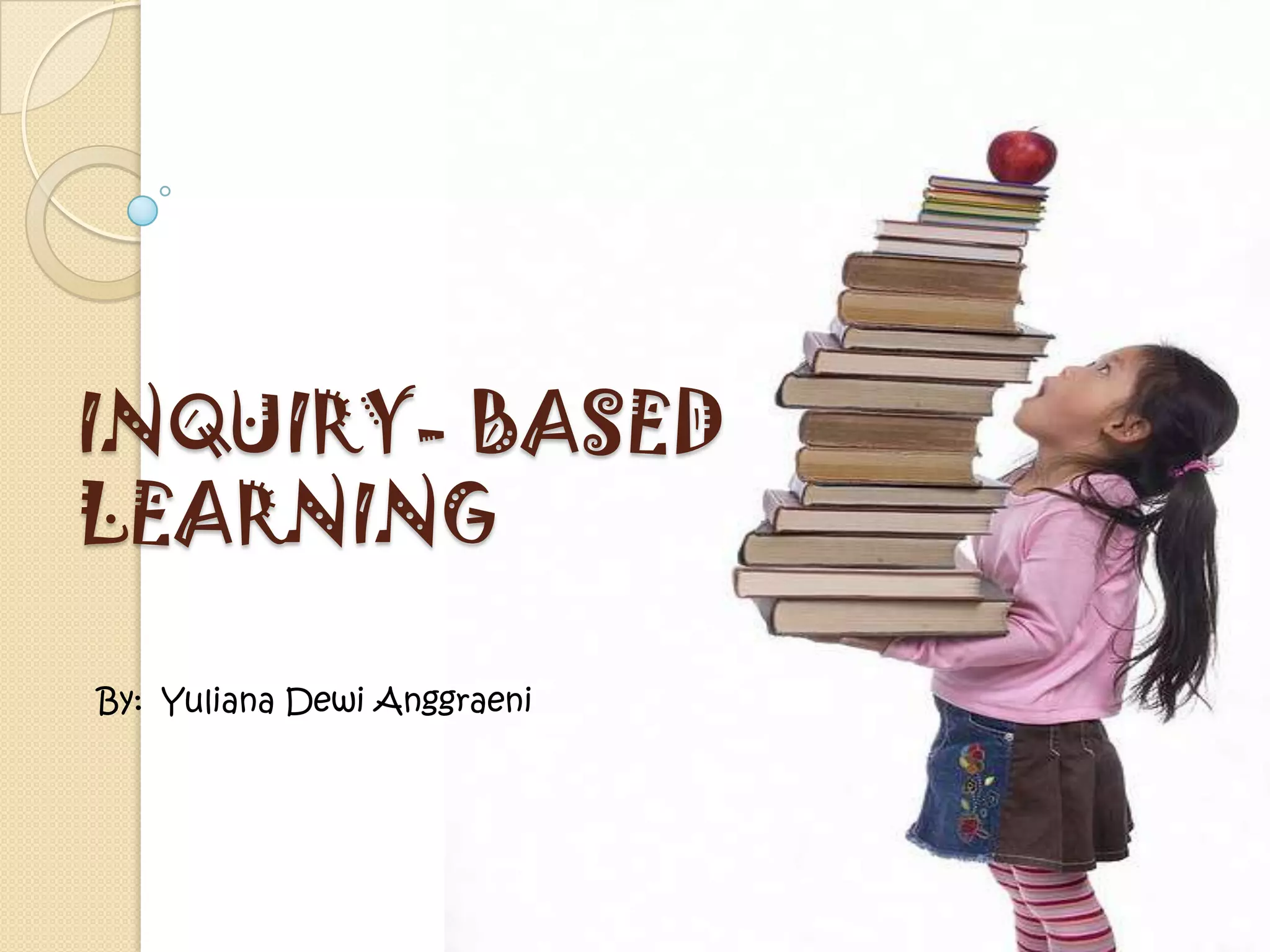 Inquiry-based learning is a constructivist approach where students take ownership of their learning through exploration, questioning, and investigation of problems or ideas. It involves asking questions, gathering information, analyzing it, generating solutions, and justifying conclusions. The teacher acts as a guide rather than directly teaching content. When implemented correctly, inquiry-based learning can develop skills like critical thinking, problem-solving, and lifelong learning. It emphasizes building knowledge through a step-wise process and applying different perspectives to topics. The key components of inquiry include activating prior knowledge, providing background information, defining accountable outcomes, modeling examples, and asking questions to guide research.