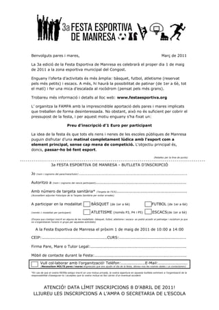 3a FESTA ESPORTIVA DE MANRESA - BUTLLETA D’INSCRIPCIÓ