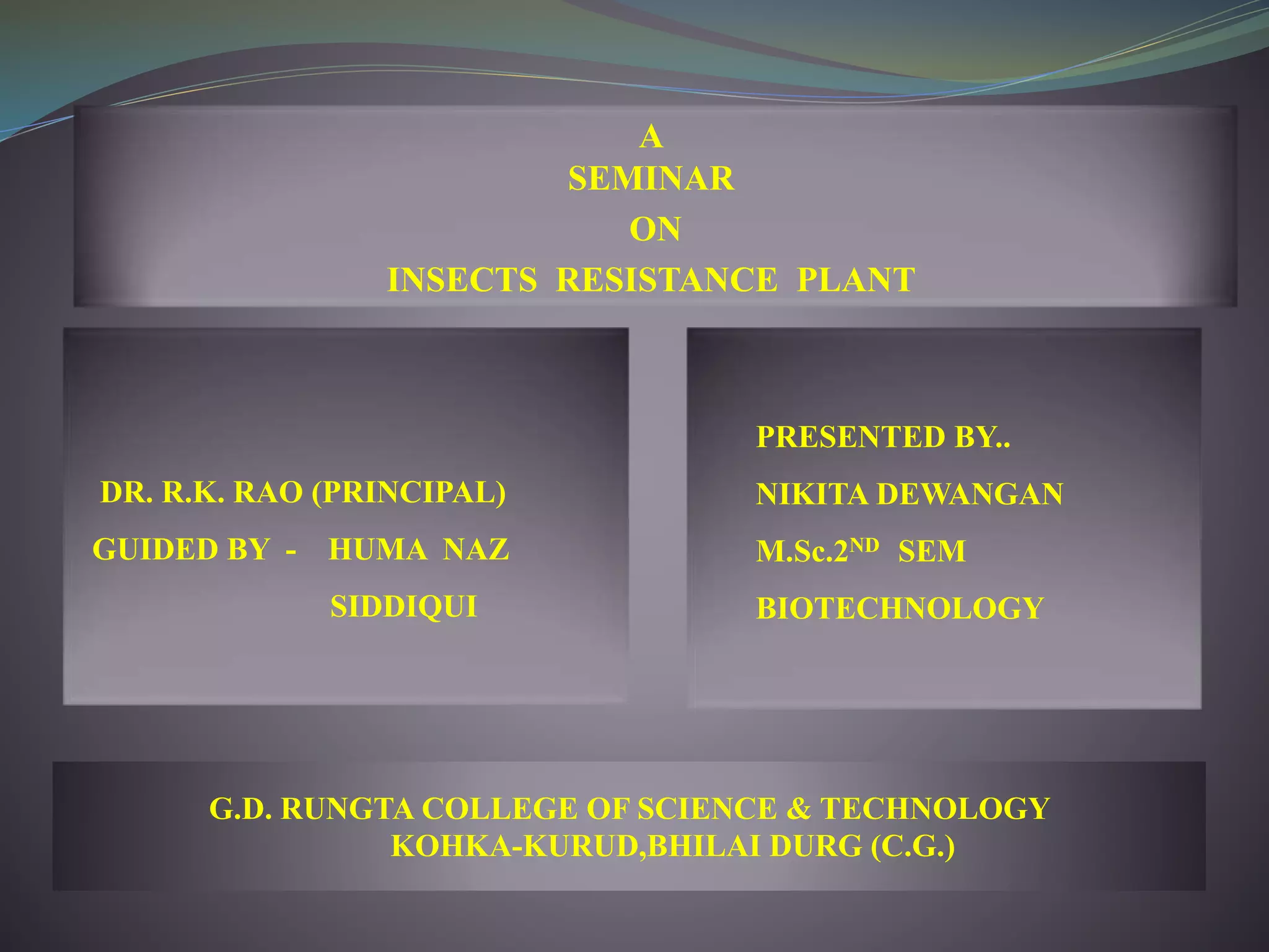 1. The seminar discusses developing transgenic plants resistant to insects through the transfer of resistance genes from microorganisms, higher plants, and animals into crop plants.