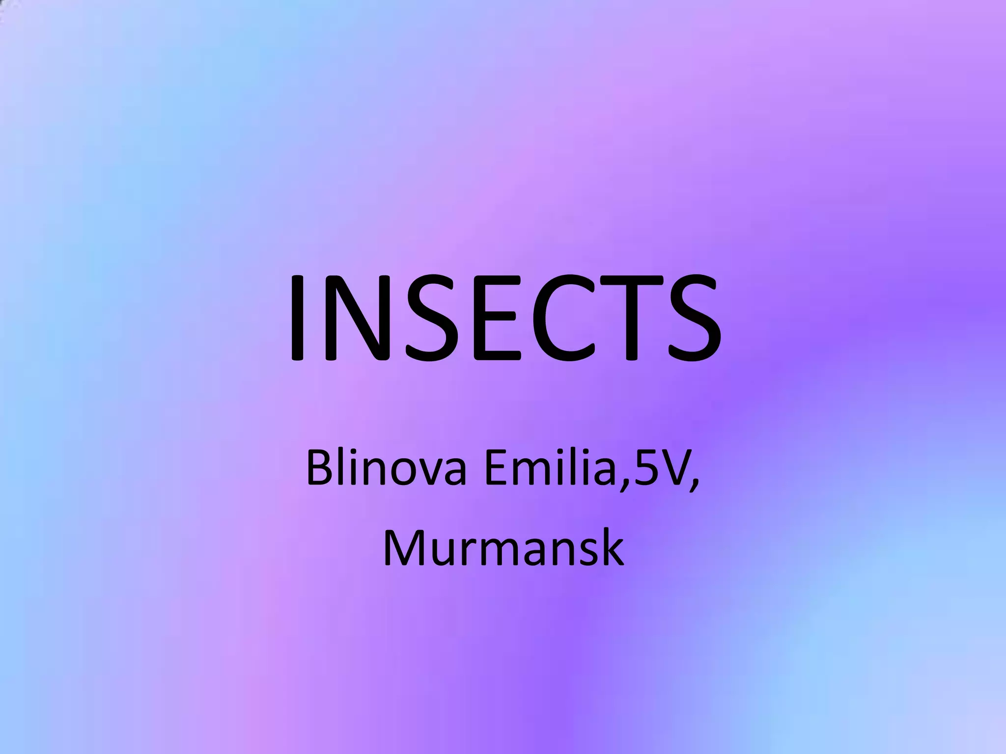 The document discusses different types of insects including flies, wasps, butterflies, dragonflies, bees, ladybirds, bumblebees, mosquitoes, grasshoppers, beetles, and ants. It notes that insects live all around us, on the ground and in the air, and play an important role in nature by cleaning forests and fields and providing food for birds. Some insects like bees also produce honey, which is a useful food for humans when ill.