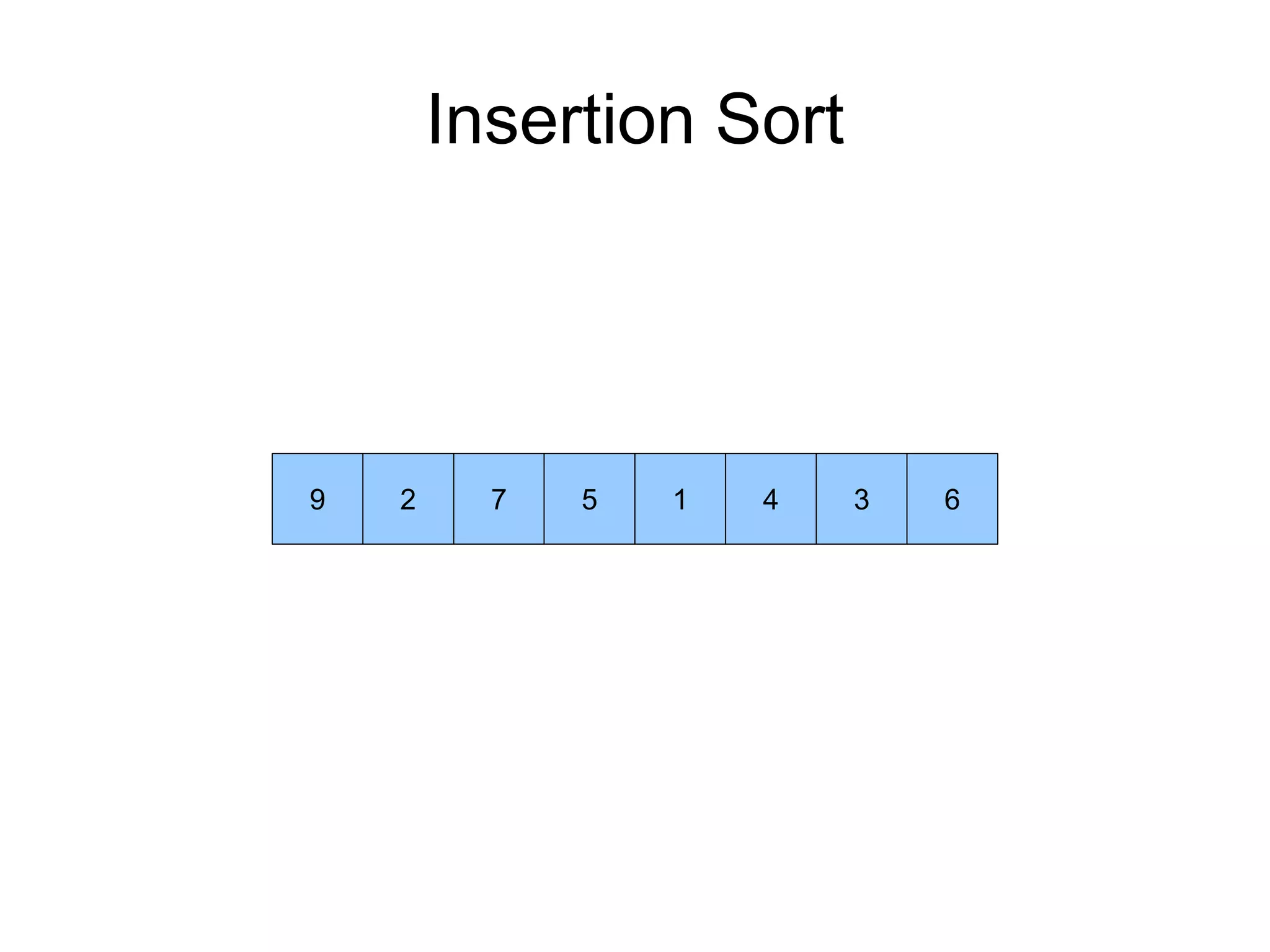 The document explains the process of insertion sort, detailing the steps involved in sorting an array by dividing it into a sorted and an unsorted section. It describes how to insert elements from the unsorted section into their correct position in the sorted section through comparisons and shifting values. The example uses a sequence of numbers to illustrate the insertion sort method.