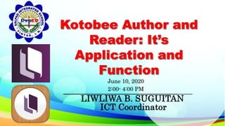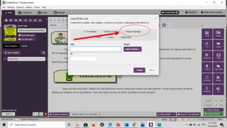 Kotobee Author is an ebook creator and EPUB editor that allows users to easily create interactive ebooks rich with various multimedia elements like video, audio, 3D content, questions and more. It has four main tabs that allow users to create and import content, customize the ebook interface, add interactive elements, and export the ebook in over 12 different formats. The document then provides steps for how to create an interactive ebook using Kotobee Author, including adding a cover page, chapters, subchapters, embedded content, questions and more.