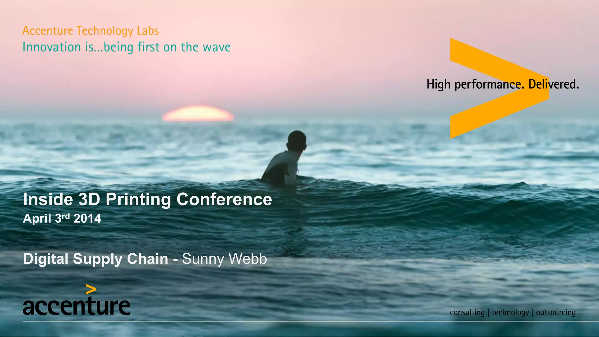 This document summarizes a presentation given by Sunny Webb at the Inside 3D Printing Conference on April 3rd, 2014 about digital supply chains. The presentation discussed how digital technology is disrupting traditional business models and supply chains. It noted that digital technologies like 3D printing and the internet of things will allow for more personalized and on-demand manufacturing. The presentation also provided statistics on the growth of the 3D printing industry and examples of how companies are using 3D printing in areas like prototyping, manufacturing and supply chain optimization.