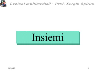 Il documento tratta il concetto di insieme, definendo i tipi di insiemi (finiti e infiniti) e come rappresentarli, inclusi esempi ed operazioni come unione, intersezione e differenza. Si discutono anche proprietà fondamentali delle operazioni sugli insiemi e l'idea di partizione degli insiemi. Infine, vengono forniti esercizi per applicare i concetti presentati.