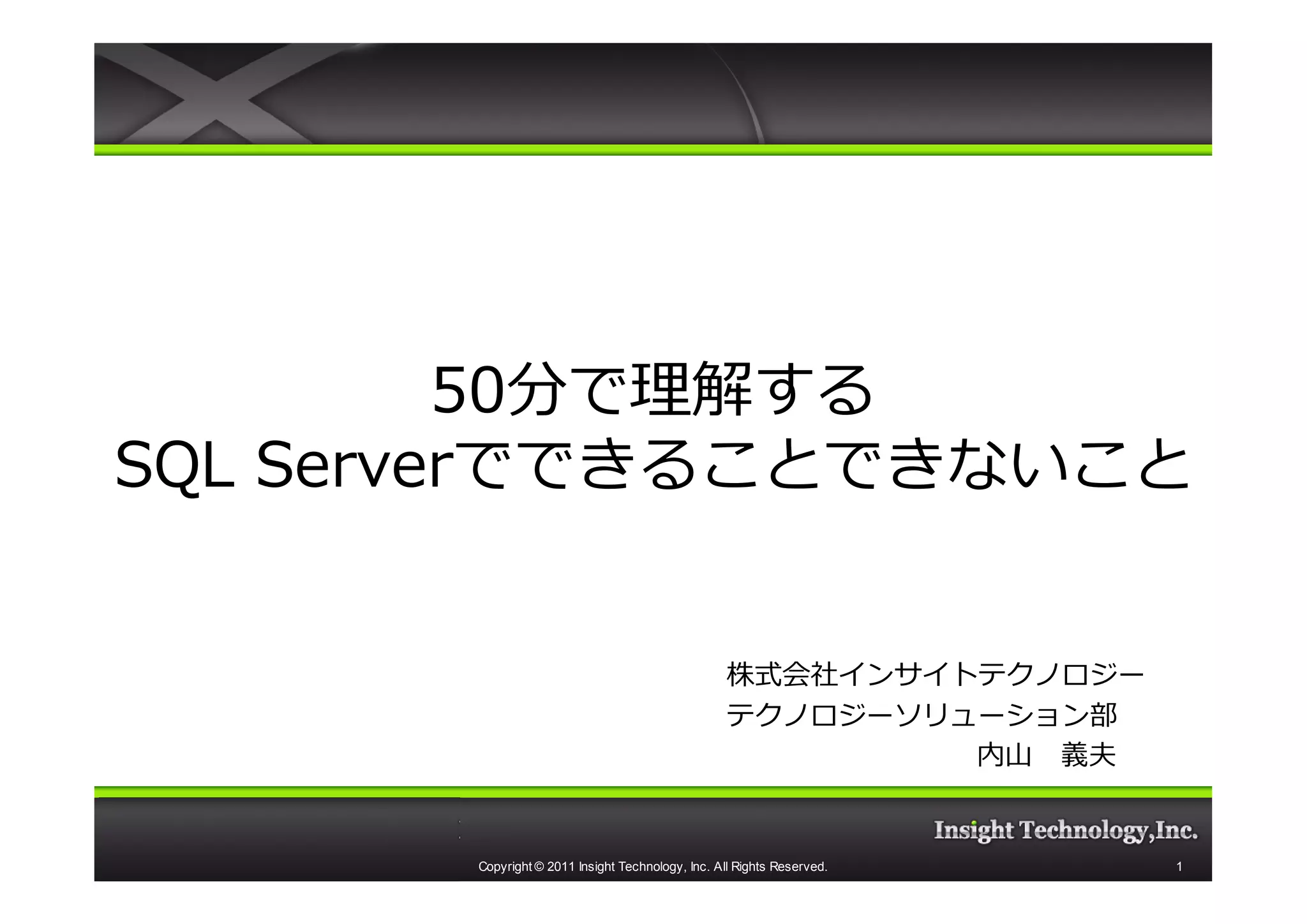 Machine Tests Benchmark Suite. Explain github.com/alexziskind1/machine_tests #1 [INSIGHT OUT 2011] C12 50分で理解する SQL Serverでできることできないこと(uchiyama)