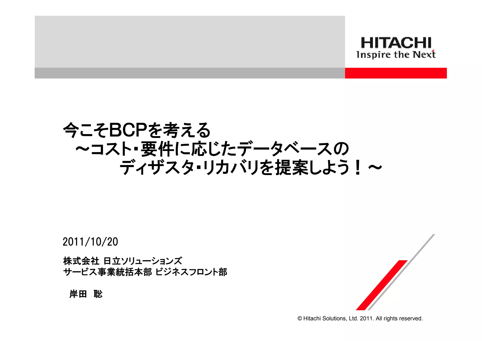 レガシーに埋もれたデータをリアルタイムでクラウドへ [ATTUNITY & インサイトテクノロジー IoT / Big Data フォーラム 2018] [INSIGHT OUT 2011] C27 今こそBCPを考える ~コスト・要件に応じたデータベースのディザスタ・リカバリを提案しよう!~(kishida)