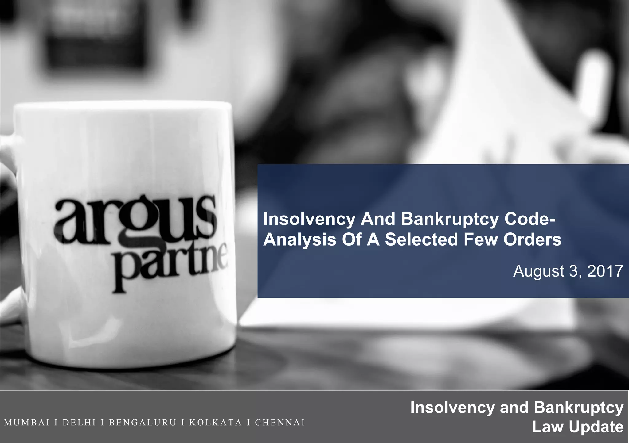 The document provides an introduction and overview of key provisions of the Insolvency and Bankruptcy Code of India relating to corporate insolvency resolution processes. It discusses who can initiate insolvency proceedings under the Code, including financial creditors owed financial debt, operational creditors owed operational debt, and corporate debtors themselves. It also summarizes relevant definitions from the Code, such as what constitutes a debt and default. The document aims to analyze select orders from National Company Law Tribunals and the National Company Law Appellate Tribunal to understand how provisions of the Code have been interpreted in practice.