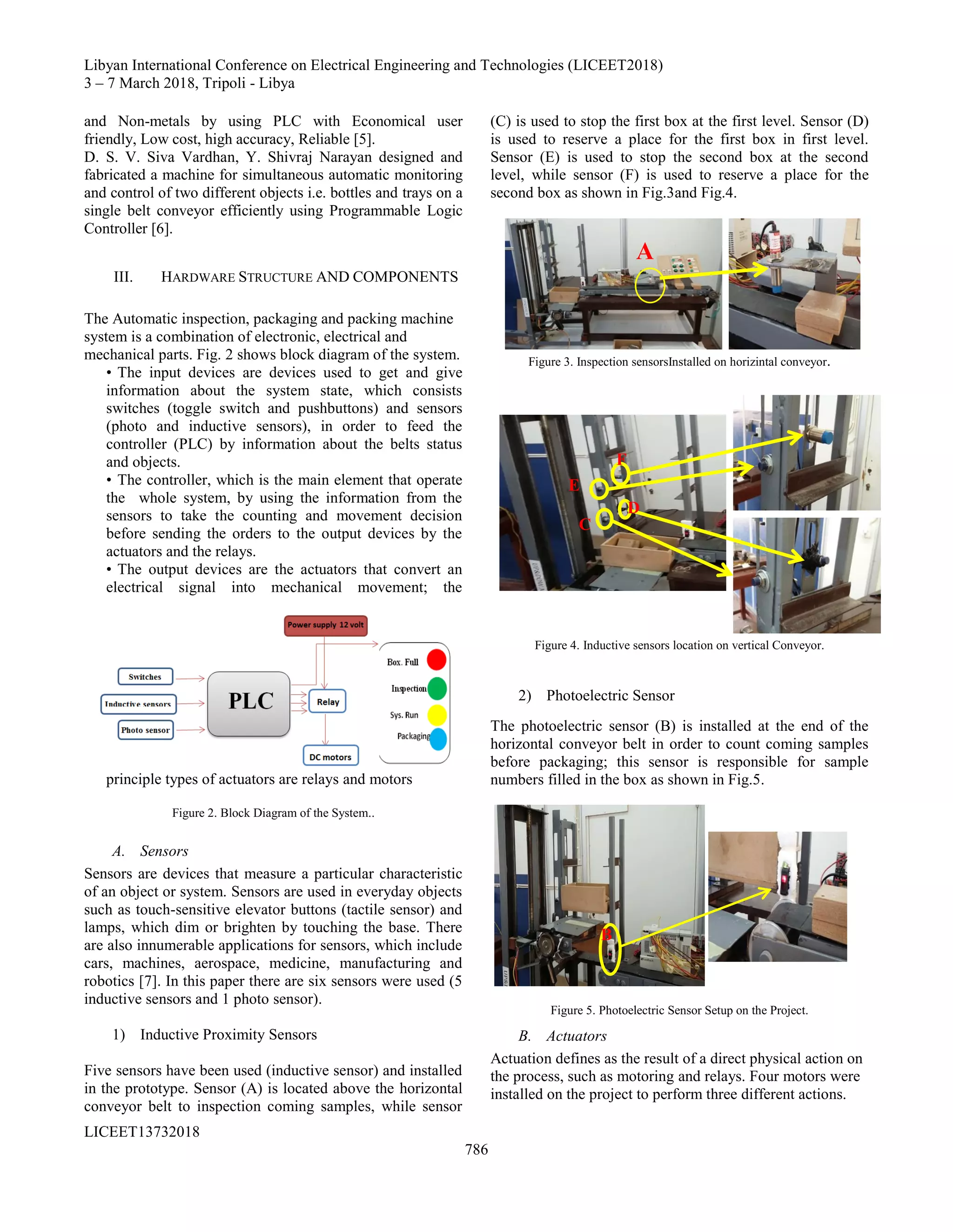 The document details the development of an automated inspection, packaging, and packing machine driven by a programmable logic controller (PLC) for enhanced efficiency. It describes the operational mechanics involving horizontal and vertical conveyors, sensors, and actuators that facilitate packaging processes, achieving a throughput of 24 boxes per hour compared to 17 for manual methods. The successful implementation showcases the advantages of automation in reducing labor time and increasing productivity in packaging applications.