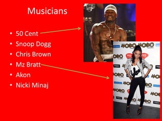 1. Common cover shots include close-ups, mid shots, and long shots of musicians. Inside pages often use close-ups and mid shots.