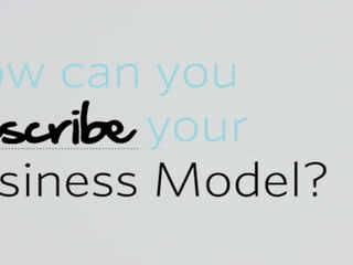 This document introduces the Business Model Canvas, which is a strategic management template for developing new or documenting existing business models. It is comprised of nine blocks that describe key components of a business model: Customer Segments, Value Propositions, Channels, Customer Relationships, Revenue Streams, Key Resources, Key Activities, Key Partnerships, and Cost Structure. The document provides brief descriptions of each block and encourages the reader to use the Business Model Canvas template to create and write key words on sheets representing each block to develop their business model.