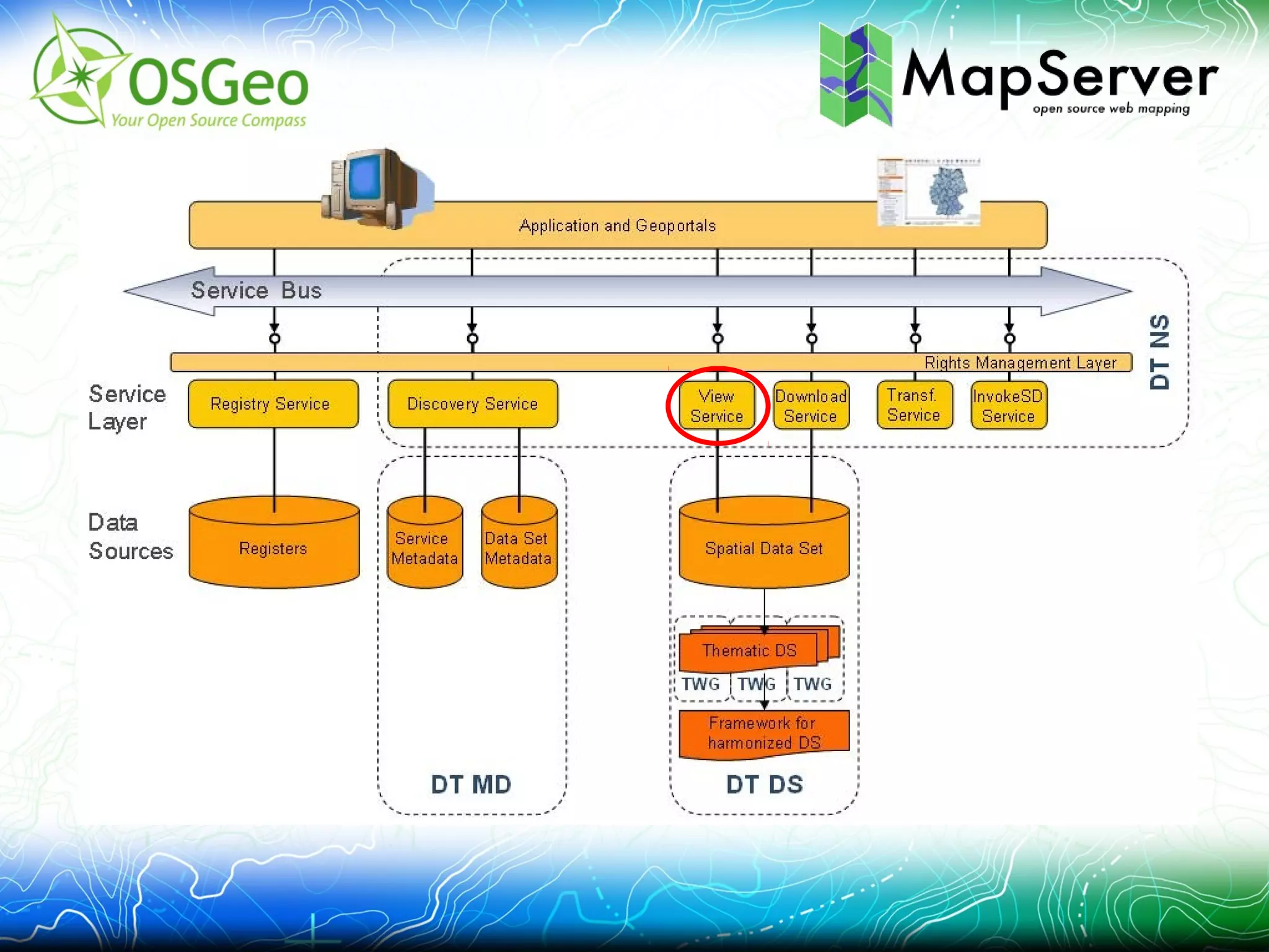 This document provides an overview of implementing an INSPIRE View Service using the open source MapServer platform. It describes activating INSPIRE support in MapServer, adding multi-language support, including INSPIRE specific metadata, and using named group layers. The implementation is available in MapServer 6.2 and has been tested against the INSPIRE WMS tester. It provides INSPIRE compliant metadata and capabilities documents and allows rendering INSPIRE compliant map layers and data.