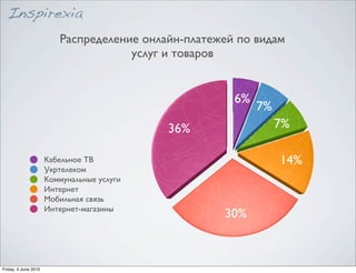 В первом квартале 2010 года в Украине было проведено 24 миллиона безналичных операций с использованием платежных карт. Основные категории онлайн-платежей включали коммунальные услуги, интернет и кабельное ТВ, при этом 88,4% транзакций были выполнены с использованием карт системы Cirrus/Maestro. ПриватБанк и РайффайзенБанк стали ведущими банками по количеству использованных карт в онлайн-операциях.