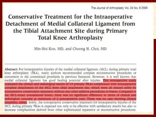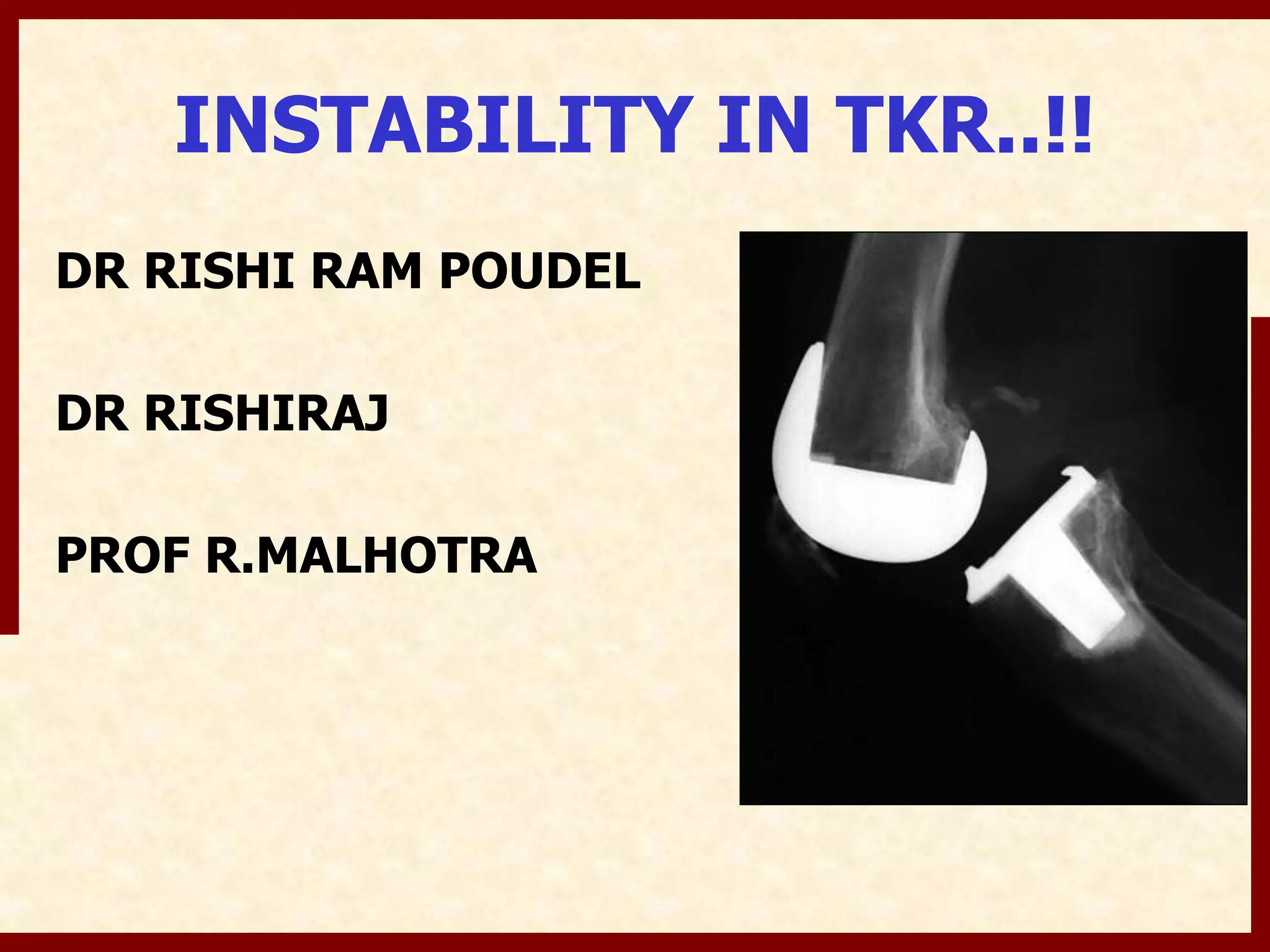 This document discusses instability after total knee arthroplasty (TKA). It begins by outlining the goals and basic principles of TKA. It then describes the bone cuts made during TKA and emphasizes that resection of the proximal tibia influences both flexion and extension gaps. The document discusses various causes of instability after TKA including improper bone cuts, soft tissue imbalance, and component malpositioning. It provides details on managing different types of instability such as instability in extension, flexion, and mid-flexion. Prevention of instability through proper bone cuts and soft tissue balancing is emphasized.