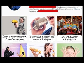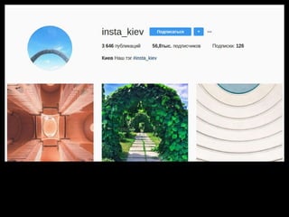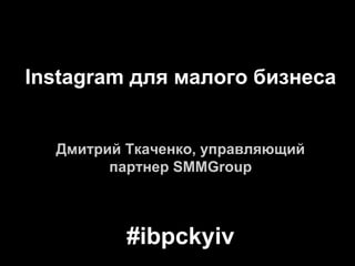 Документ представляют собой руководство по использованию Instagram для малого бизнеса от Дмитрия Ткаченко, управляющего партнёра smmgroup. Он обсуждает оптимизацию аккаунтов, контентные стратегии и инструменты продвижения, а также проблемы и возможности, связанные с платформой. Включены советы по использованию хештегов, рекламы и взаимодействий с пользователями.