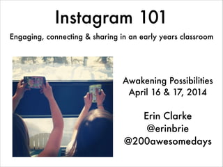 The document is a guide on using Instagram in early years classrooms, featuring tips on engagement, creativity, and sharing content effectively. It covers essential rules for posting, the importance of quality images, and how to connect with families and educators. Additionally, it highlights the differences between Instagram and Twitter, underscores the value of visual storytelling, and provides resources for getting started.