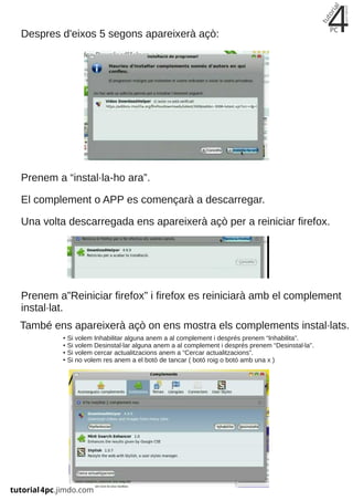Prenem a”Reiniciar firefox” i firefox es reiniciarà amb el complement