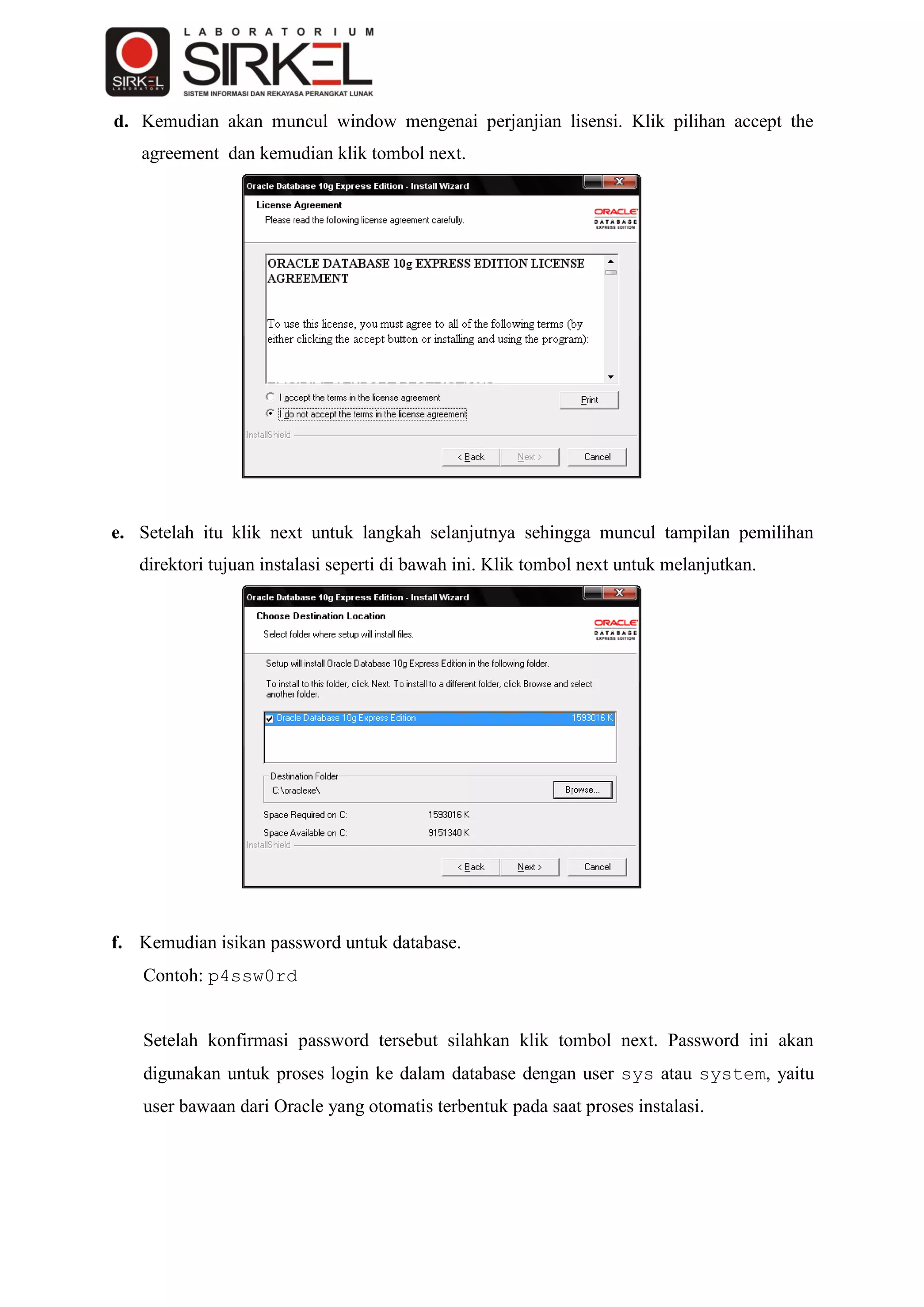 Langkah – langkah untuk menginstall Oracle XE adalah sebagai berikut:
