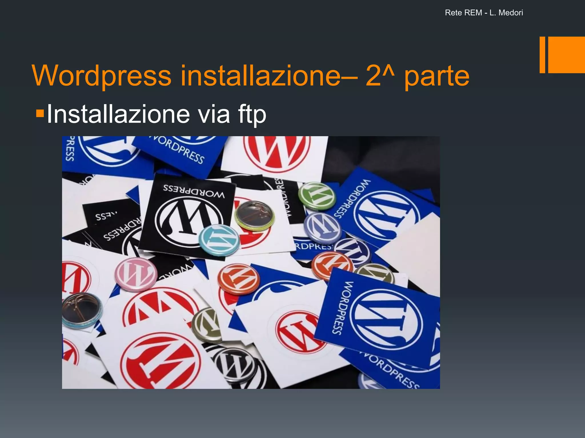 Il documento descrive il processo di installazione di WordPress tramite FTP utilizzando FileZilla per trasferire file su un server Altervista. Viene indicato di eliminare il file index.html prima di accedere al sito per verificare il successo dell'installazione. Infine, si fornisce l'indirizzo per accedere alla dashboard di WordPress.