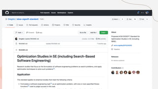 The document discusses the effectiveness of search-based software engineering (SBSE) techniques through instance space analysis, emphasizing the importance of properly selected benchmark problems for fair comparisons. It highlights the need to understand the strengths and weaknesses of different SBSE approaches based on diverse problem instances and their features. Open questions are raised regarding the assessment of SBSE techniques, their performance dependencies, and the suitability of different techniques based on specific problem characteristics.