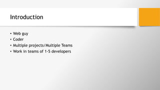 This document discusses using Vagrant and VirtualBox to create a virtual development environment for ColdFusion applications. It outlines installing Vagrant and VirtualBox, creating a Windows virtual machine, provisioning it with ColdFusion and IIS, and accessing the VM from the host computer. The benefits mentioned are having a repeatable, isolated environment that saves time over manual setup and allows teams to work consistently.