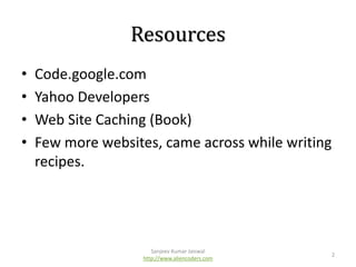 The document provides guidelines for optimizing web development practices, including HTML standards, CSS and JavaScript usage, and strategies for improving website performance. Key recommendations include minimizing HTTP requests, enabling compression, setting cache-control headers, and configuring ETags. It also acknowledges contributors and invites support for the project through various social media platforms.