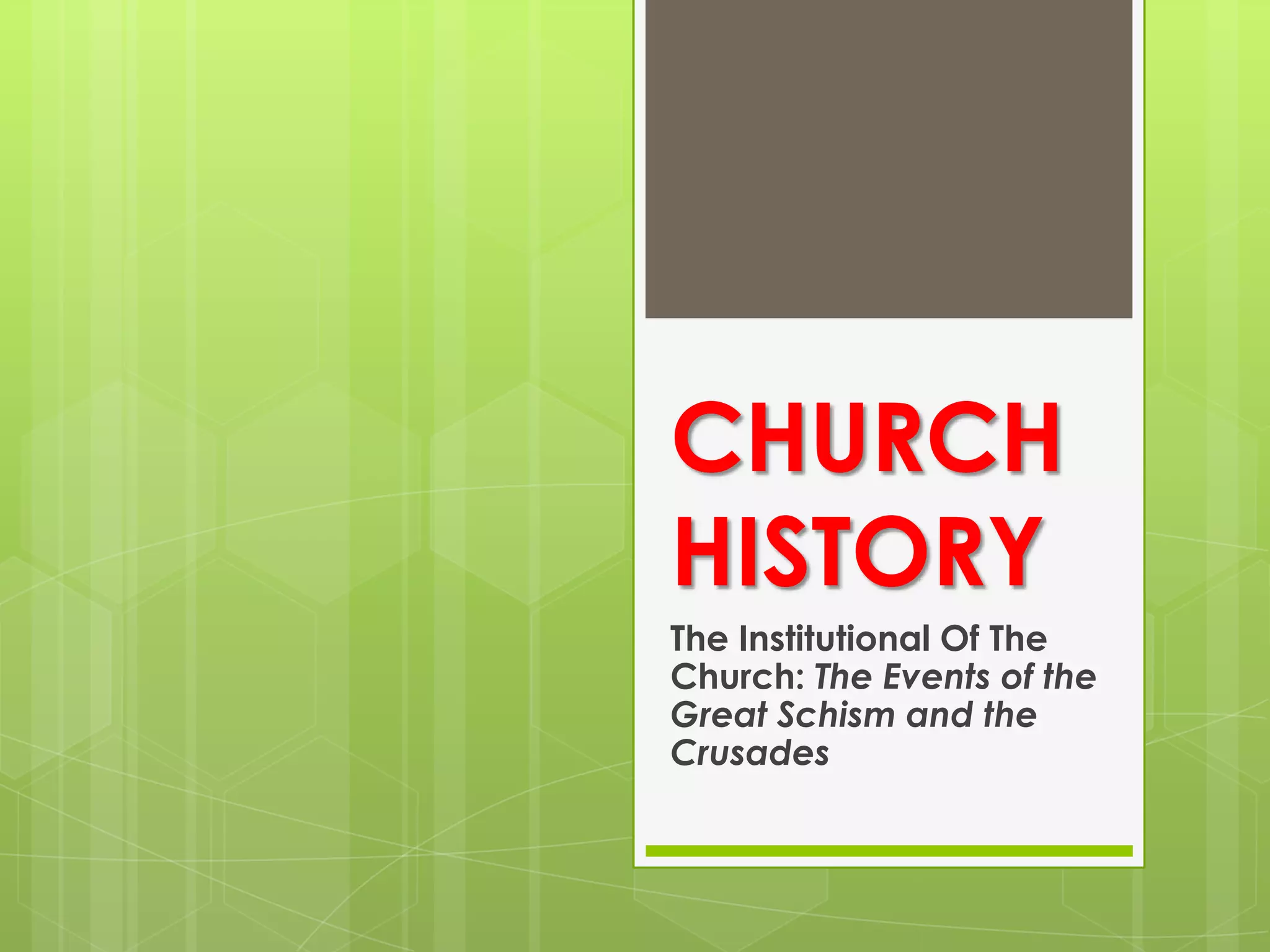 The document summarizes key events in the history of the Christian church, including the Great Schism between the Eastern Orthodox and Western Catholic churches in 1054, and the Crusades between the 11th-13th centuries. It discusses how theological and political differences grew over time between Eastern and Western Christianity. The Great Schism formally split the church after representatives from each excommunicated one another. The Crusades were a series of military expeditions called by the Pope to recapture the Holy Land from Muslim rule, though many ended in failure or unintended consequences like sacking the Christian city of Constantinople.