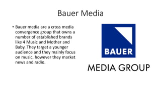 Bauer Media is a large, global media company that owns many magazines, digital products, radio and TV stations across 19 countries. As it does not currently publish a jazz magazine, Bauer Media would provide opportunities to sell copies of a new jazz magazine worldwide due to its large brand advertising. Rhinegold Publishing, a UK-based music and performing arts magazine publisher, would also be suitable as it already produces similar magazines and a jazz magazine could reach new audiences through links to their other magazines. News Corp, which focuses mainly on newspapers, would not be a good fit due to its older target audience not matching the intended audience of a jazz magazine.