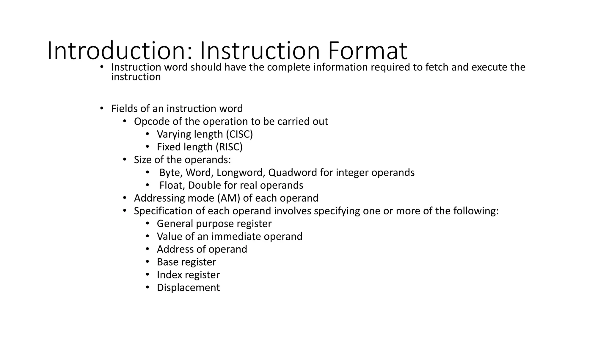 •Instruction word should have the complete information required to fetch and execute the