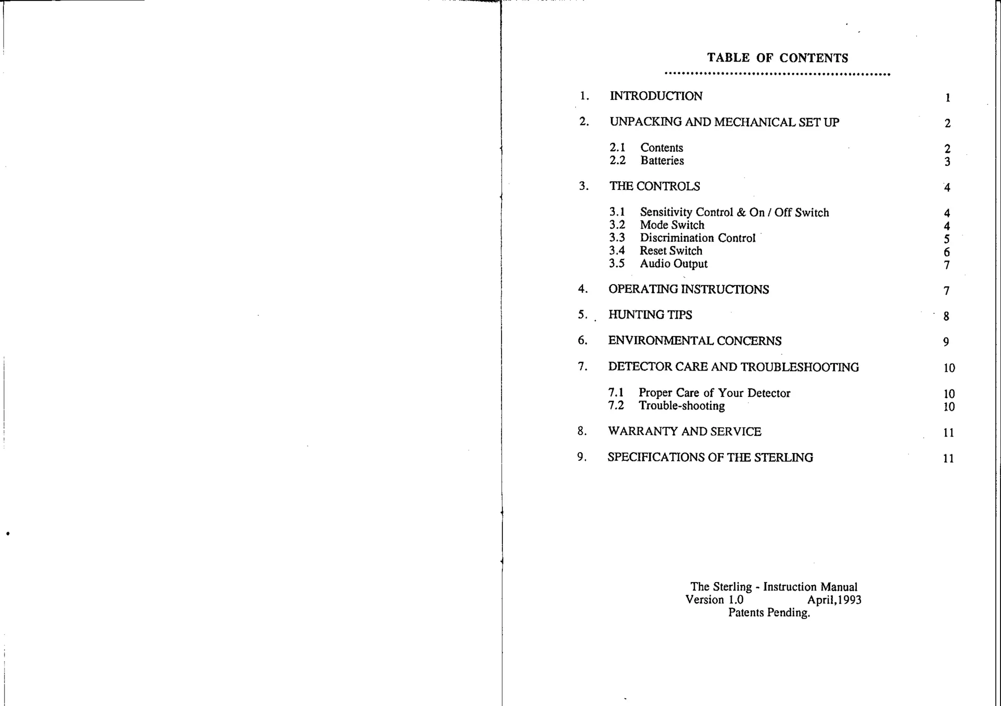 Instruction Manual Minelab Sterling Metal Detector English Language