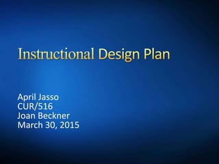 This document outlines the phases of an instructional design plan for a training course titled "Building Rapport". The course is intended to strengthen academic advising and mentoring for staff members of a Student Support Services Program. The instructional design plan involves 4 phases - defining needs and goals, objectives and technologies, implementation details, and evaluation methods. Careful planning is required using a summative evaluation to determine if learner needs were met and goals achieved. The "Building Rapport" training has never been implemented before and will assist in ensuring student success.