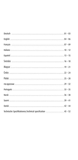 In der Tabelle mit den technischen Daten auf Seite 50–51 finden Sie die