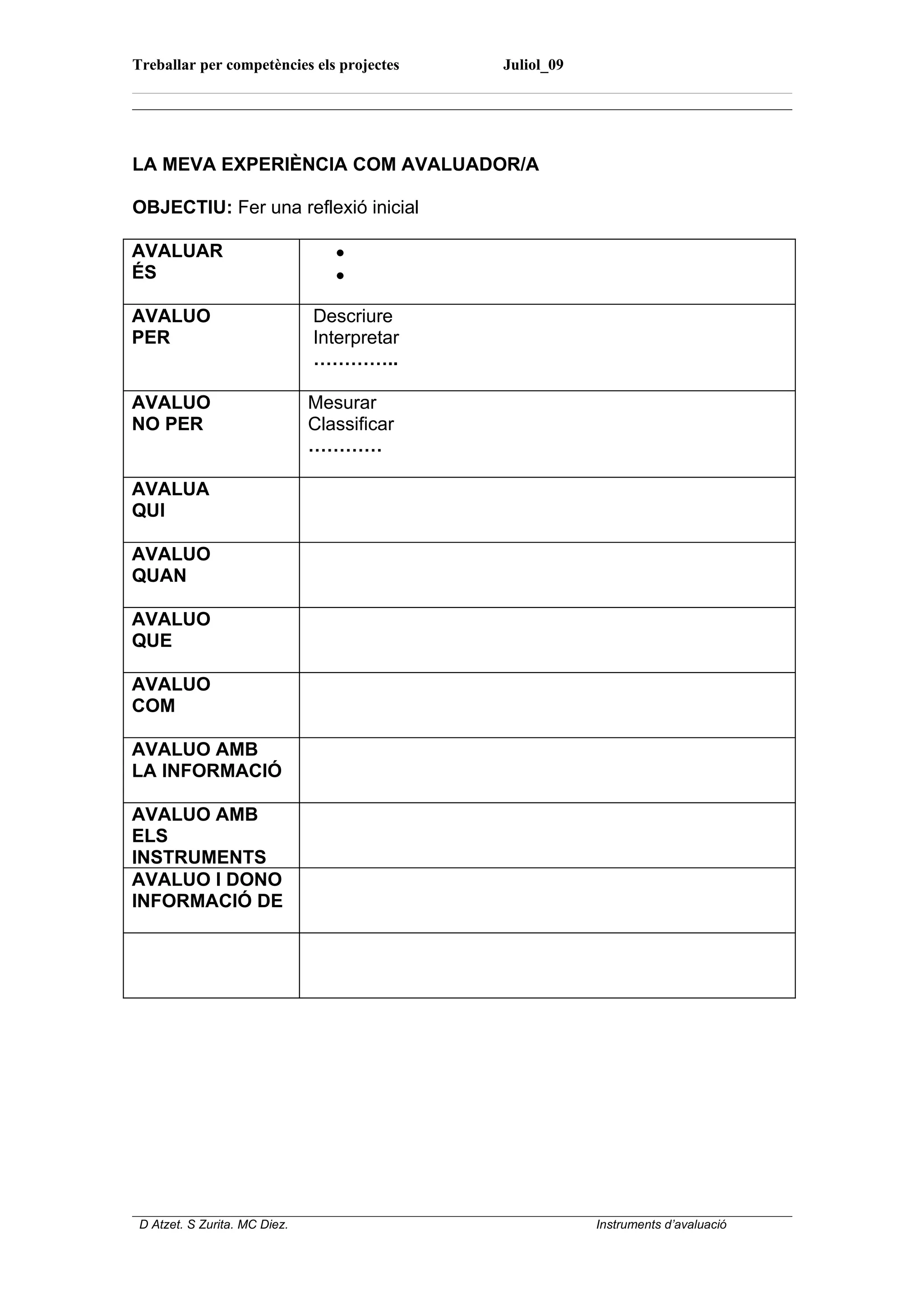 D Atzet. S Zurita. MC Diez. Instruments d’avaluació