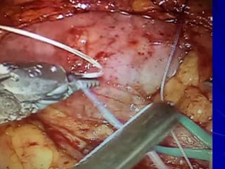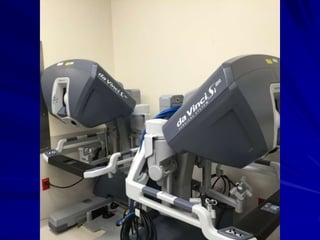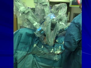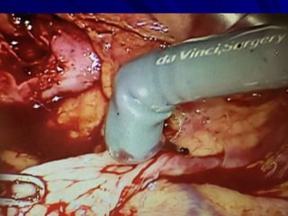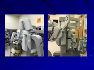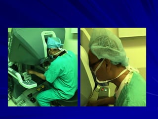 This document discusses laparoscopic surgery, a minimally invasive procedure that allows access to the peritoneal cavity for operations using small incisions and a laparoscope. It covers the history, instruments, advantages, and complications of laparoscopic procedures, emphasizing the importance of proper instrument handling and decontamination to ensure patient safety. The document also outlines the ergonomics and challenges faced by surgeons during laparoscopic surgeries, including the benefits and drawbacks of robotic-assisted laparoscopic techniques.