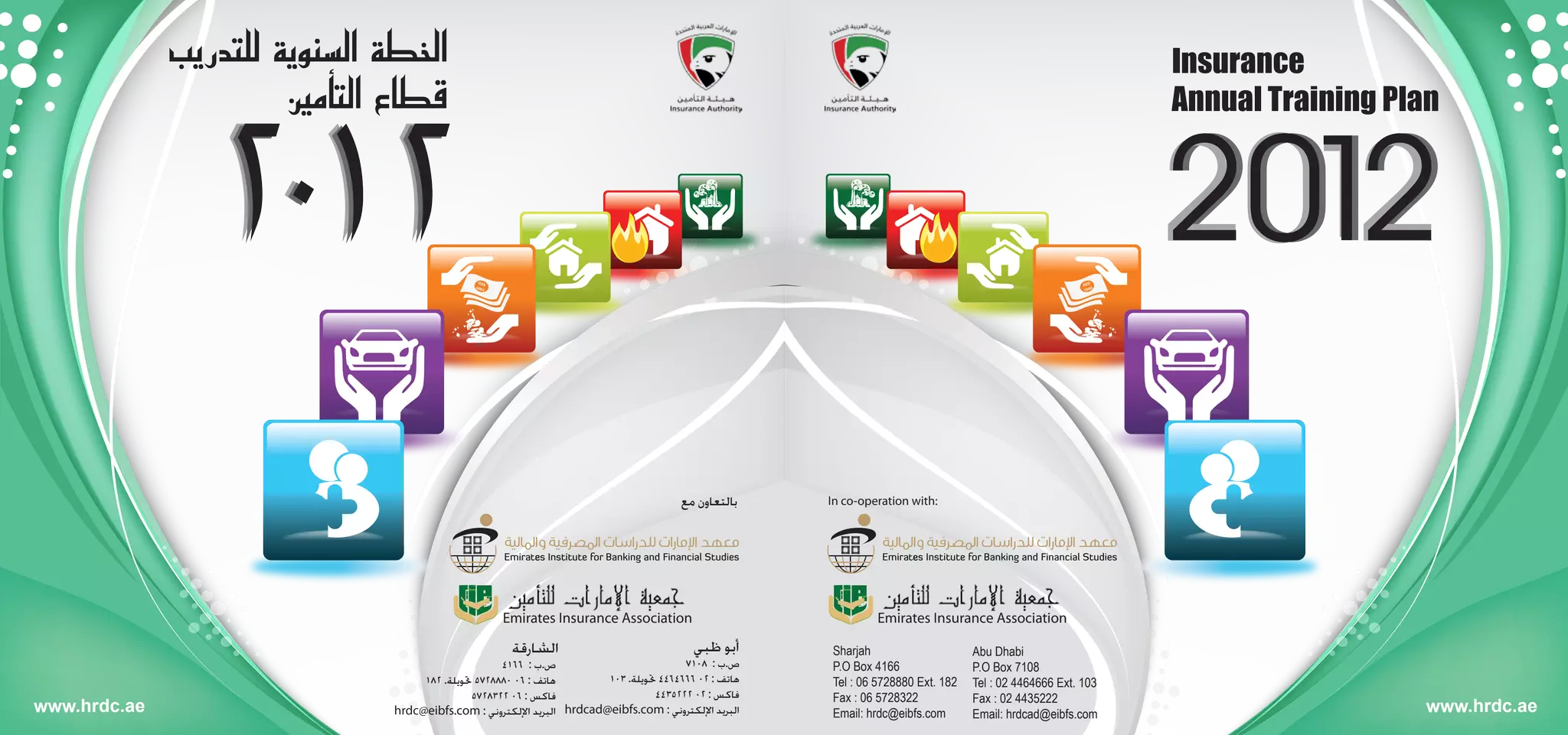 The document outlines the Insurance Authority's 2012 annual training plan developed in cooperation with the Human Resources Development Committee and Emirates Insurance Association, which includes 95 programs across various insurance topics to be held in Sharjah, Abu Dhabi, Dubai, Fujairah, and Al Ain aimed at enhancing performance and emiratization in the UAE insurance sector.