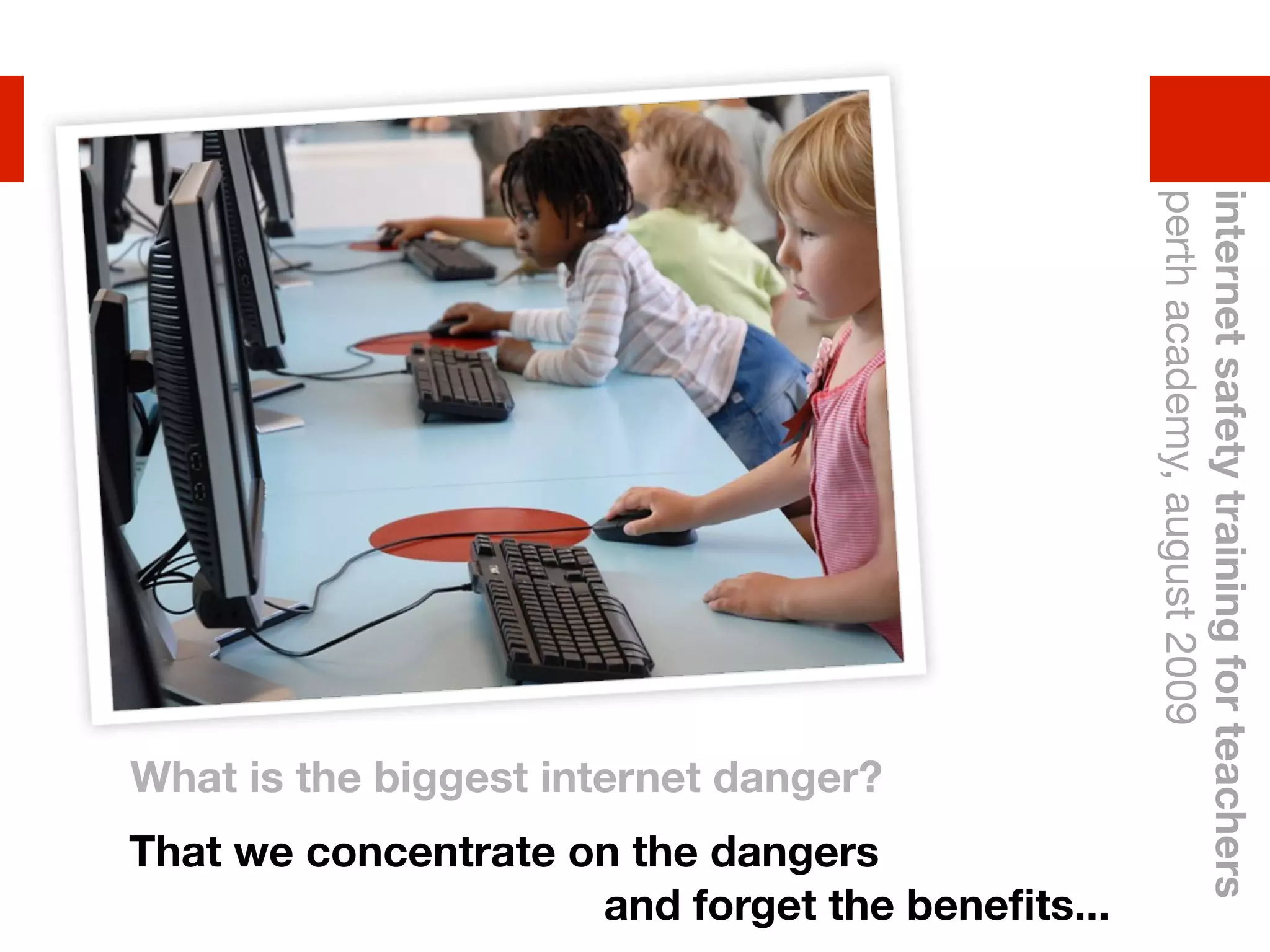 The document outlines an internet safety training session for teachers, emphasizing the need to balance awareness of online dangers with appreciation for the internet's benefits. It highlights statistics about children's online behavior, including risks associated with content, contact, and commerce. The training advocates for parental involvement and education to enhance children's safety online, while discussing relevant laws regarding indecent photographs and the legal implications of online activities.