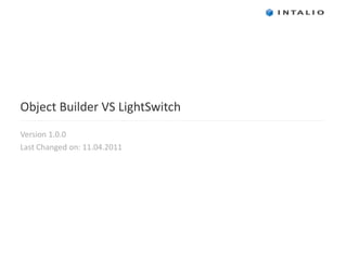 Intalio Object Builder vs Microsoft LightSwitch 1. 2. 3. 4. 5. 6. 7. 8. Support Data Type Binary Boolean Date Date Time Decimal Double Email Address Image Integer Long Integer Money Phone Number Short Integer String (Option List) Relation Ship Boolean Date Date Time Float Email Address Image Integer Currency Phone String Relation Ship URL Option List Multiple Choice Country Text Rich Text Size LightSwitch Intalio 9. Support Data Type Binary Boolean Date Date Time Decimal Double Email Address Image Integer Long Integer Money Phone Number Short Integer String (Option List) Relation Ship Boolean Date Date Time Float Email Address Image Integer Currency Phone String ( Option List, Text, Rich Text, Multiple Choice, Country ) Relation Ship URL Size DB 依存 業務依存 10. 11. 12. 13. 14. 15. 16. 17. 18. 19. 20. 21. 22. 23. 24. 25. 26. 27. 28. 29. 30. 31. 32. 33. 34. 35. 36. 比較表 項目 LightSwitch Intalio Cloud 稼働環境 Web, スタンドアローン Web のみ プログラミング言語 Visual Basic, C# Ruby, Ruby+HTML, X# 開発環境 ローカル ローカル , Web カスタムボタン ○ 画面で設定 △ ポップアップ +Ruby, X# で実現 画面デザイン ○ 1カ所で操作可能 △ 基本操作は可能だが、画面遷移が多い 画面デザインのコード ○ 自動で各属性のコードが自動生成 △ マニュアル対応 画面レイアウト ○ 表示する画面のテンプレートが多い × 1パターンのみ メニューレイアウト △ 既存のみ、但しコードで、追加可能 ○ UI で設定可能、多言語未対応 リレーションシップ ○ あり ○ あり リレーションシップ拡張 × なし ○ 一覧、コンボボックス表示等があり データタイプ ○ SQLServer 依存 ○ 業務依存にラッピング データ定義のルール ○ あり ○ あり 多言語対応 × なし ○ あり イメージファイル △ ローカルファイルのみ ○ リモートの URL 設定が可能 コードエディター ○ △ コード補助なし セキュリティと役割 △ 設定は可能だが、 β 版では動かない ○ 設定可能 37. 最後に LightSwitch は VBA に変わるツールとして MS は位置づけており、 Excel を開いた後、フォーム画面を開くようなアプリケーションは LightSwitch に置き換える価値はあると考えられる。 UI でフロント・バックのベースを定義し、 Visual Studio のデバック機能を利用し、ビジネスロジック等の拡張機能の補完が可能 スタンドアローン、 Web 、共にサポートする事で、構築するアプリケーションの予算・規模・拡張性に合わせる事が可能。さらに、 Azure へのデプロイも可能。 LightSwitch は一画面で操作が可能であるのに対して、 Intalio は画面遷移が多い。 LightSwitch は β 版である為、 Intalio と比較すると、不足している機能があるが、 VBA での構築レベルのアプリケーションであれば、コード補完で十分対応が可能 ビジネスユーザーが UI でフロント・バックの画面や項目を定義した後、 SI 等が拡張機能を追加するという流れは、 LightSwitch 、 Intalio 共に可能 スタンドアローン-> Web へのアプリケーションの移行は容易(但し、管理系の追加が不明) 38.