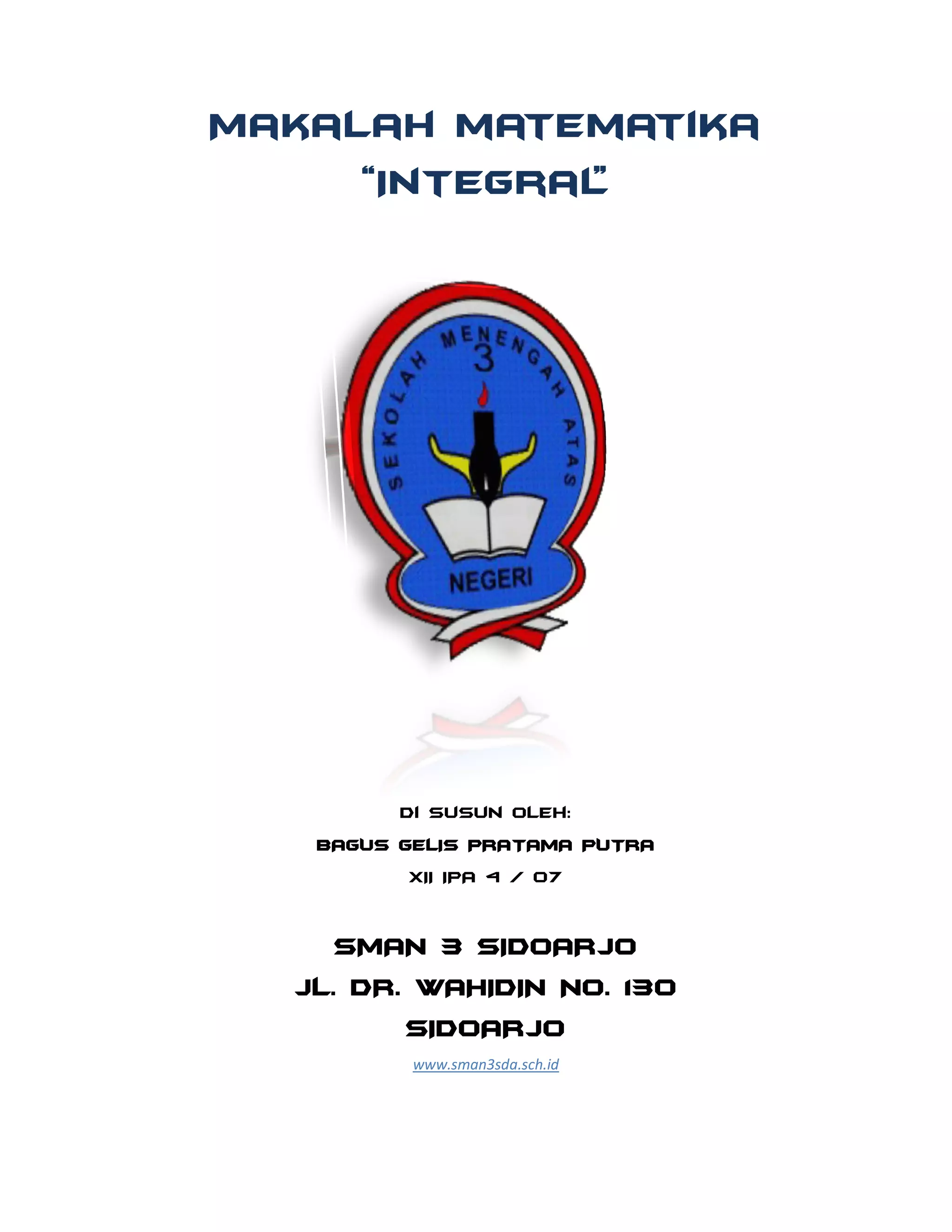 Makalah ini membahas konsep integral dalam matematika, baik integral tak tentu maupun integral tertentu, serta aplikasinya dalam menghitung luas dan volume. Tujuan makalah ini adalah untuk edukasi peserta didik agar memahami dan menguasai materi integral serta penerapannya dalam kehidupan sehari-hari. Penulis menjelaskan berbagai metode penyelesaian integral dan berharap makalah ini bermanfaat bagi pembaca.