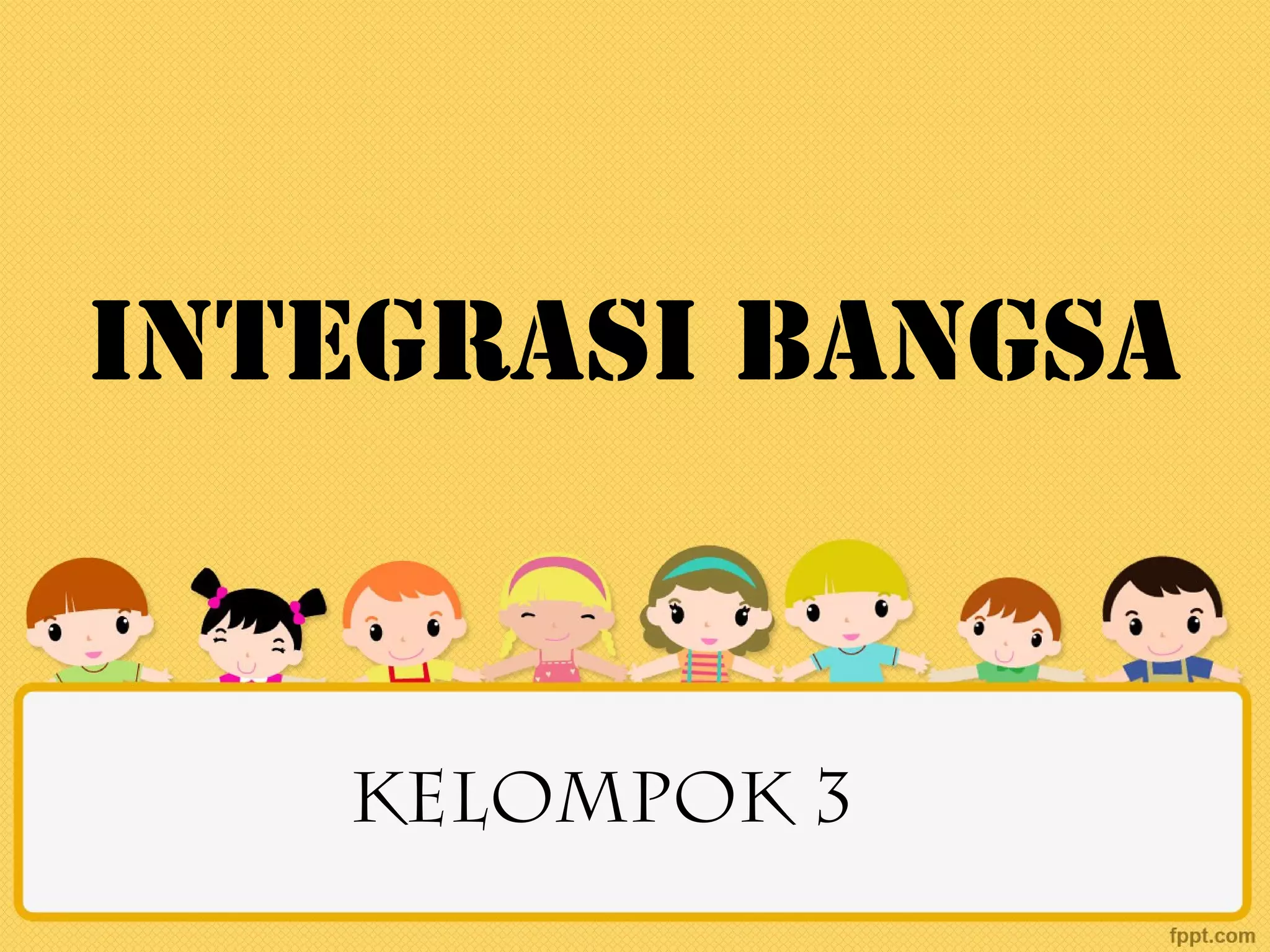 Integrasi bangsa di Indonesia belum berjalan dengan baik karena masih terjadi berbagai konflik sosial antar kelompok seperti antar suku, agama, dan ras. Untuk mencapai integrasi yang utuh diperlukan pengembangan identitas kebhinekaan sebagai jati diri bangsa dan penerapan toleransi antar kelompok untuk mempertahankan integritas bangsa.