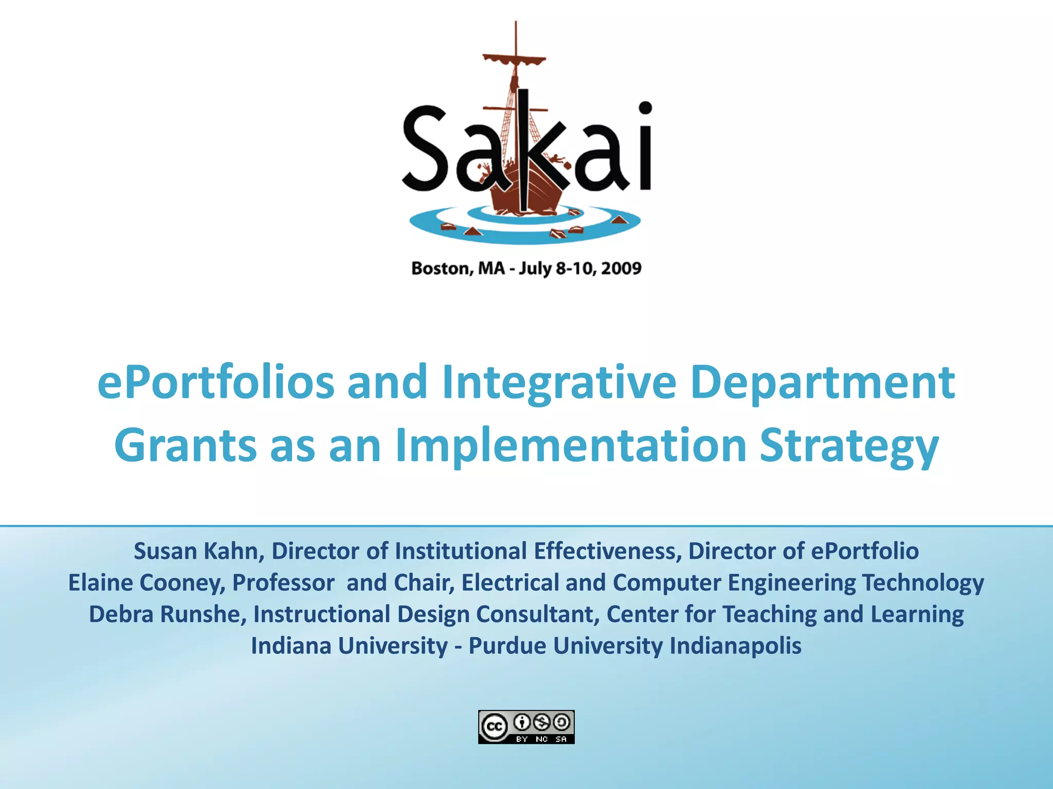 This document discusses the use of ePortfolios and departmental grants at Indiana University-Purdue University Indianapolis (IUPUI) to support the integration of critical thinking skills across departments and programs. Small grants are provided to interested academic units for curricular preparation and guidance on using ePortfolios. Early adopters have seen benefits like improved software tools and increased collaboration around learning outcomes. Plans are in place to pilot ePortfolios more widely and assess their impact on critical thinking skills.