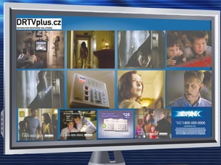 Co je DRTVDirect Response TV spot (také Brandmercial ) dává možnost přímé responze na nabídku formou odeslání sms, volání do call centra, registrací na webu Kampaň získá zadavateli Tzv. leads-nové zákazníky databázi potenciálních zákazníků pro další oslovení Výrobně jsou DRTV spoty nesrovnatelně levnější oproti klasickým TVC Využívají výhodných mediálních časů DRTV spot přesvědčuje a motivuje k reakci na nabídku Neměří se mediálními hodnotami, ale náklady na získaného zákazníka Cost per Call / Cost per Sell