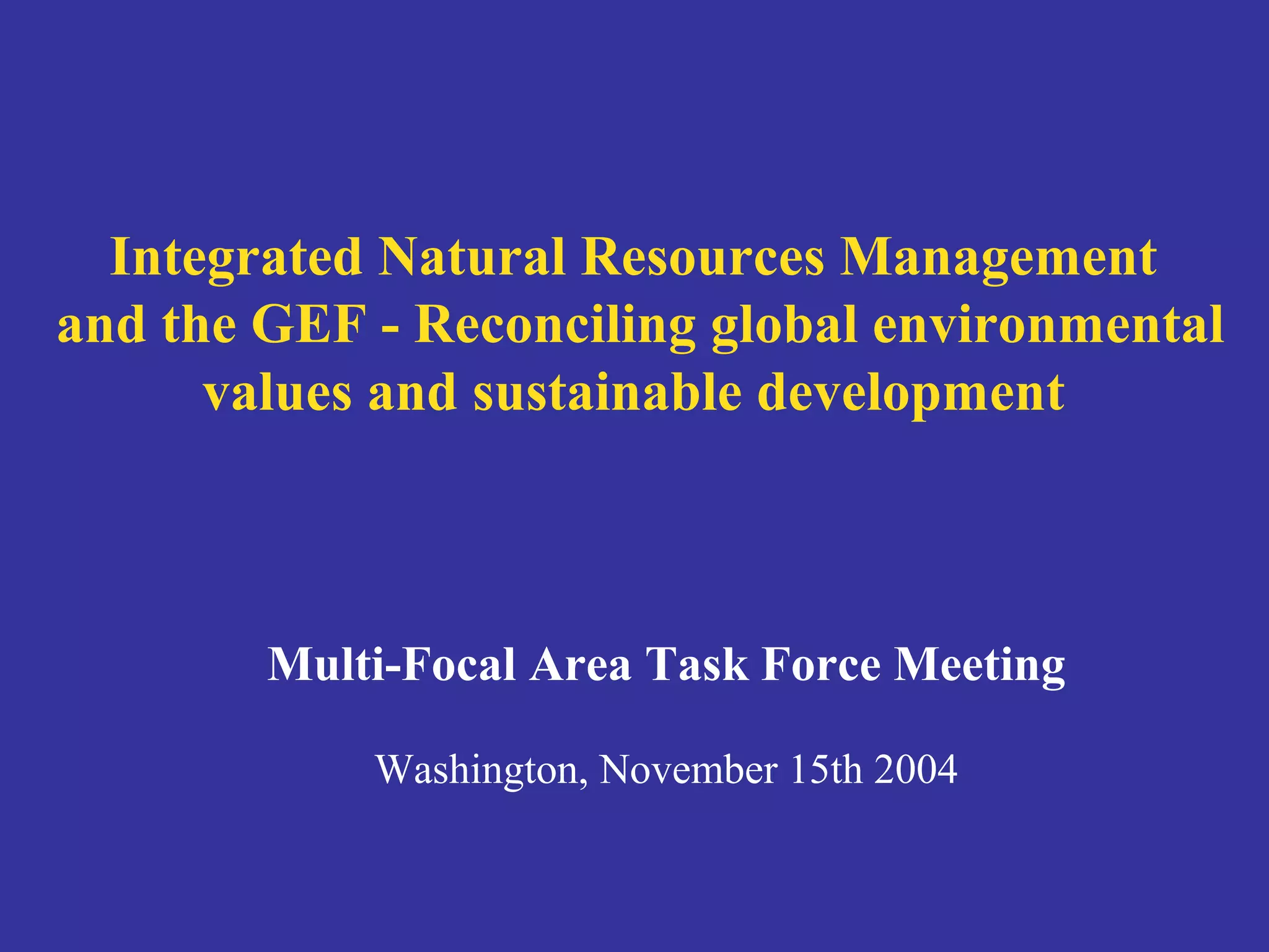 The document discusses integrated natural resources management as essential for achieving sustainable development, highlighting its alignment with the Millennium Development Goals and the need for cooperation across various focal areas. It emphasizes the importance of a coordinated approach, identifies obstacles to integration, and suggests concrete actions to enhance collaboration among GEF focal areas. Examples such as the Caspian Sea basin showcase potential successful integrated management strategies addressing environmental challenges.