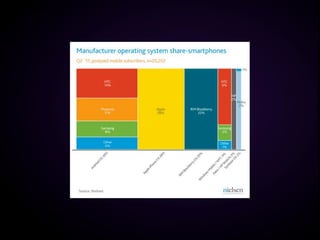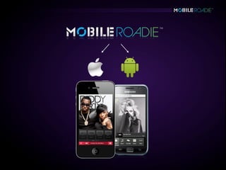 The document discusses trends in mobile device usage and the mobile app industry. It notes that there are now over 5.5 billion mobile users and mobile apps account for 50% of mobile internet traffic. The mobile app market is growing rapidly, with over $2 billion in revenue in 2010, 70% of which was from apps. It also outlines differences between bespoke and platform-based mobile app development. The document promotes Mobile Roadie as a platform for brands and organizations to create engaging mobile apps and discusses some of its clients. It predicts continued growth in smartphones, tablets, and mobile usage overall.