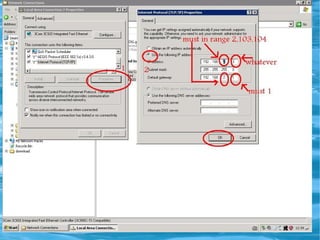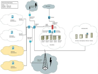 This document outlines the specifications and configuration for supplying, installing, and testing an integrated server with radius accounting capabilities. It includes hardware requirements of a dual core CPU, 2GB RAM, and 360GB hard drive. It then details the software including the Linux operating system, FreeRadius server, MySQL, and other applications. The document provides a standard configuration with IP addresses and hostnames for 7 virtual servers and specifies basic networking, VPN, Samba file sharing, and radius authentication functions. It also describes user management and traffic control features to be implemented.