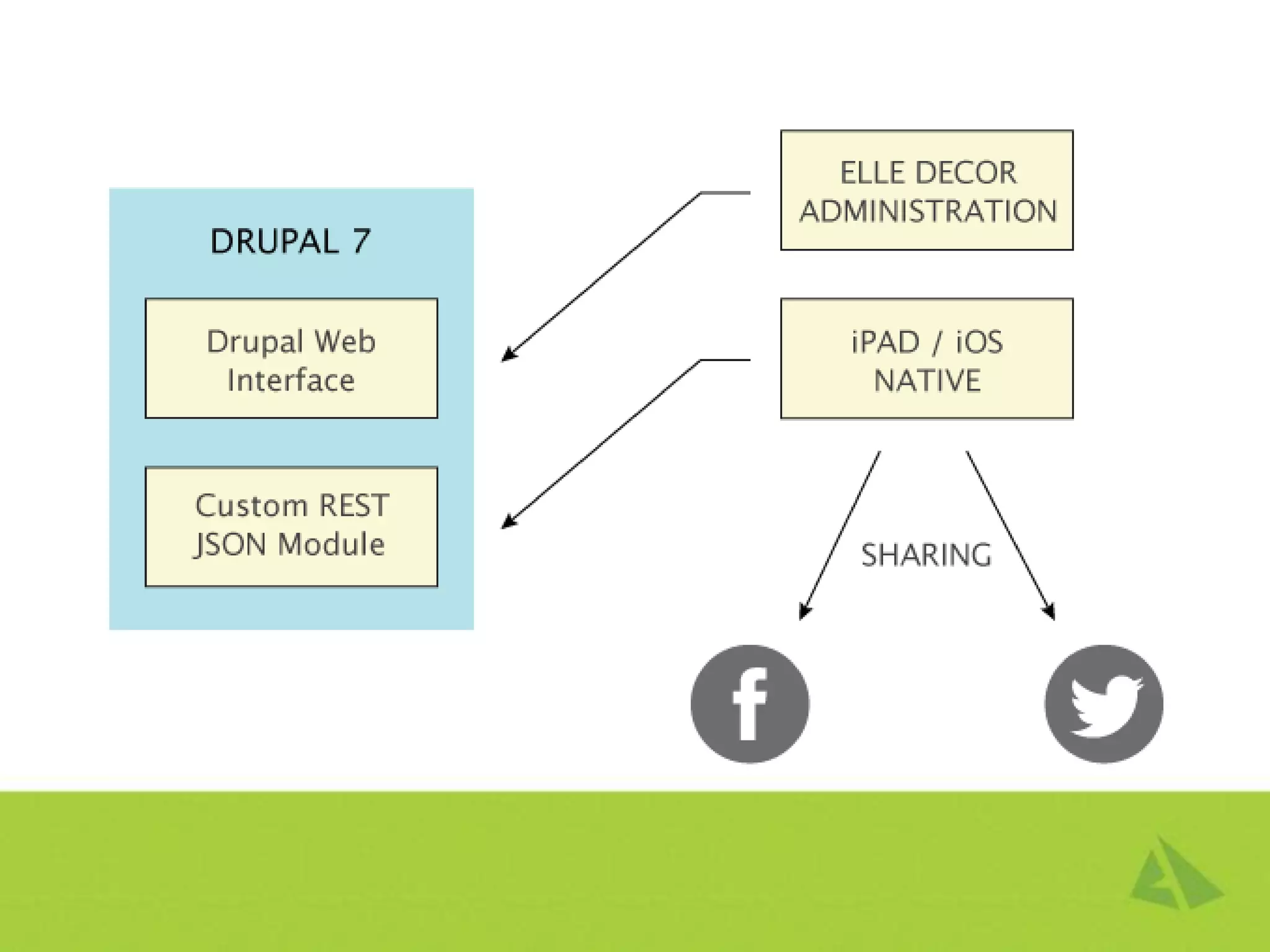 The document discusses the development of the Elle Décor Lookbook app, which allows users to browse interior design images from Elle Décor's archives on their iPad. The app was built using iOS native capabilities and integrated with Drupal for content management. Key features included responsive image galleries, ability to create and share design files, and articles from Elle Décor. Initial performance issues were addressed through code optimization and caching.