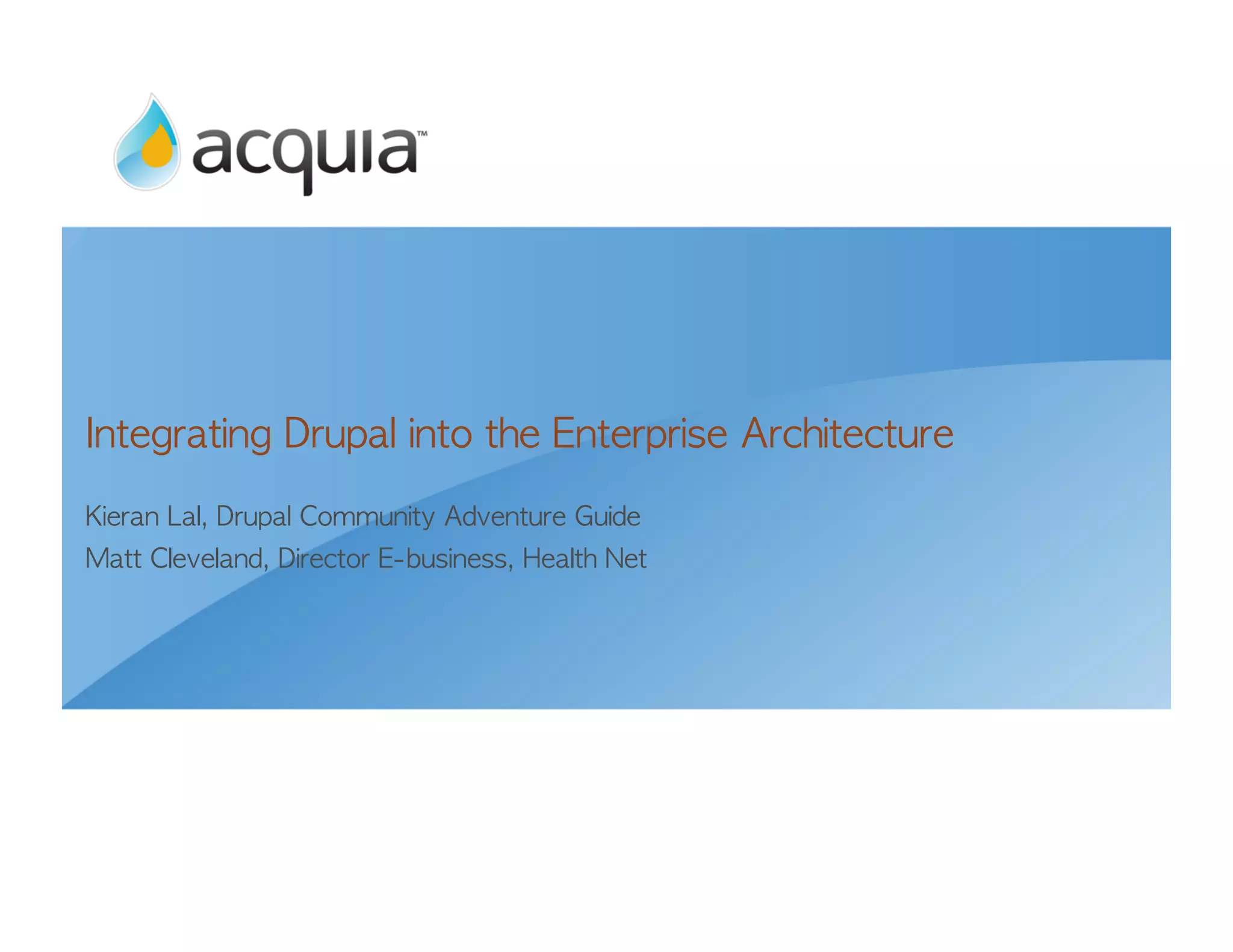 The document outlines various aspects of Drupal as a content management system, including its ability to manage content and users, and its enterprise capabilities such as security and multi-language support. It also mentions resources for further information including a webinar recording. Additionally, it refers to Acquia's hiring and partner program, highlighting its position as a trusted advisor in the Drupal community.