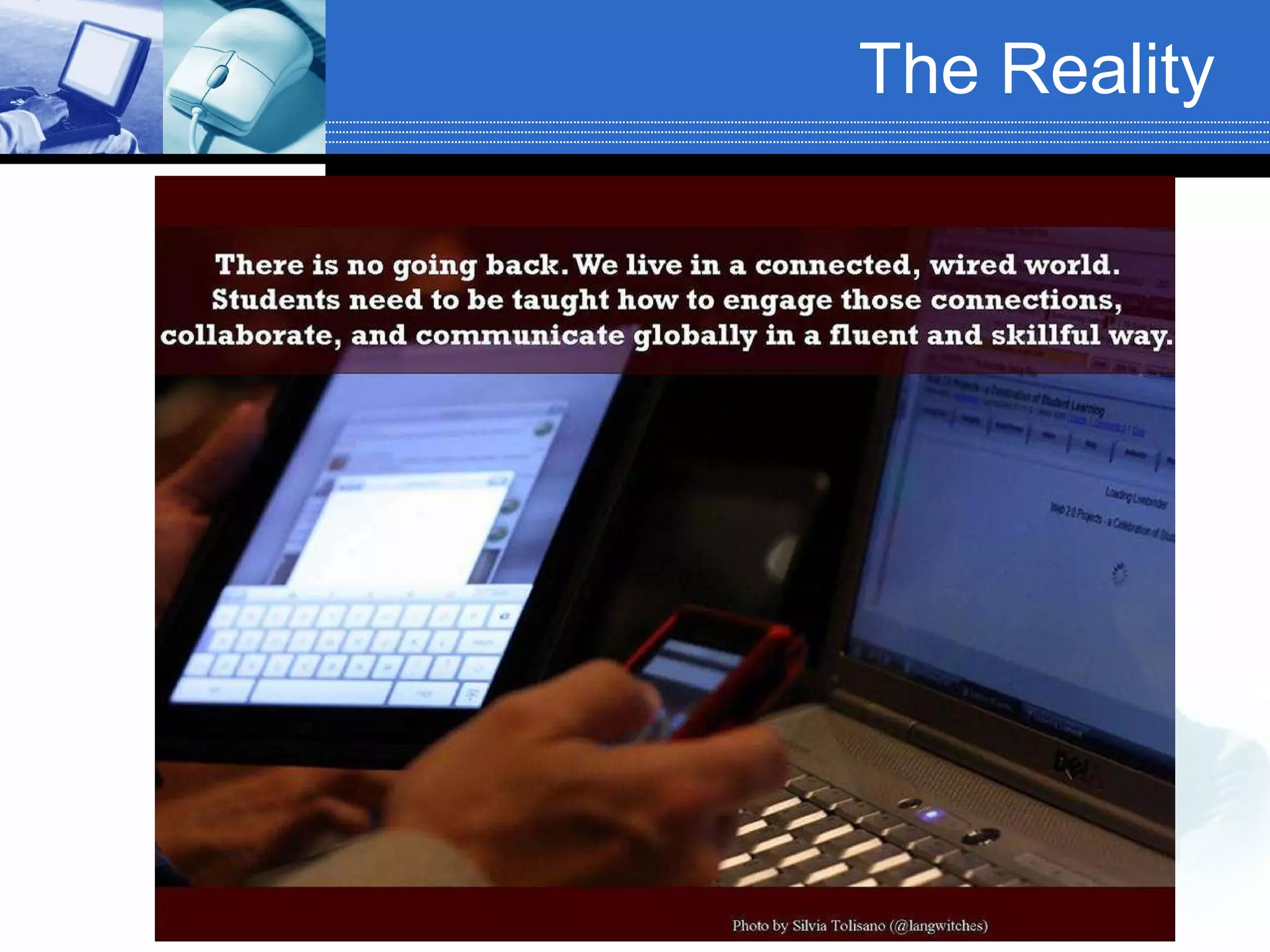 This document discusses integrating information and communication technologies (ICT) into classroom teaching and learning. It provides resources on 21st century skills, Bloom's Digital Taxonomy, Web 1.0 vs Web 2.0, and examples of Web 2.0 tools that can be used in the classroom. The document encourages teachers to try new technologies, think outside the box, and educate students for their future, not the past.