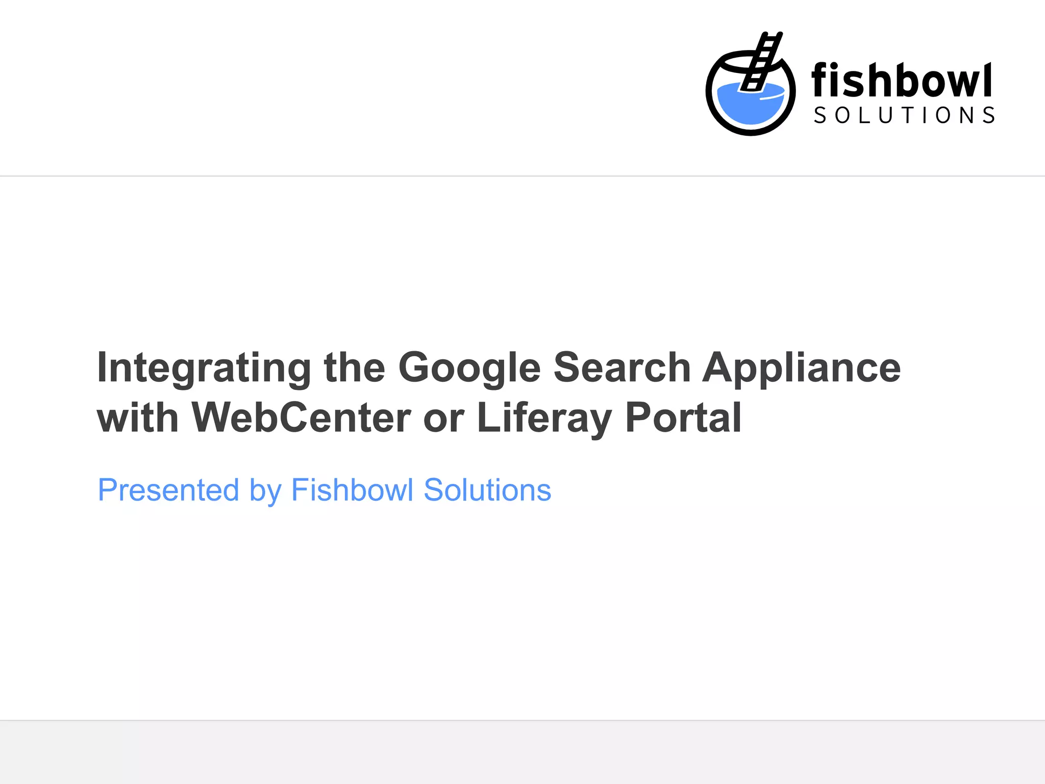 The document provides an overview of integrating the Google Search Appliance (GSA) with web portals such as Liferay and Oracle's WebCenter, highlighting a suite of solutions and services offered by Fishbowl Solutions. It outlines the process for indexing content, integrating search functionalities, and customizing user experiences, emphasizing the benefits of using the GSA Portal Search Suite for seamless and secure search operations. Additionally, it details options for deployment and customization, aiming to enhance knowledge sharing in enterprises.