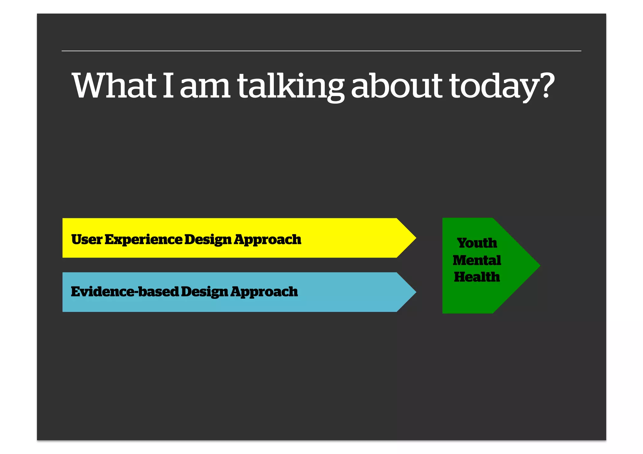 The document discusses integrating user experience design with evidence-based approaches to create effective online mental health services for youth. It emphasizes the importance of collaborating with young people during the design process to ensure the services meet their needs and expectations, while also being grounded in sound research. Key challenges and lessons learned highlight the ongoing negotiation between different measurement frameworks and the need for continuous communication and adaptation of tools and methods.