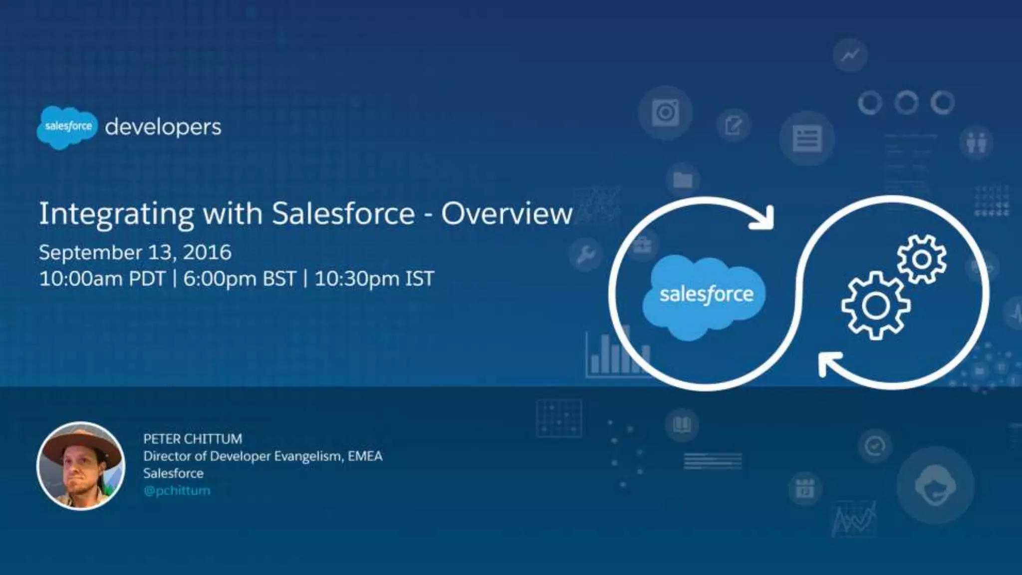 The document discusses forward-looking statements related to Salesforce.com, Inc., highlighting the risks, uncertainties, and assumptions that may impact the company's future performance. It provides information about potential factors affecting financial results and mentions various integration services offered by Salesforce, including details on APIs and tools for developers. Additionally, it invites participants to an upcoming webinar and encourages engagement through developer forums.