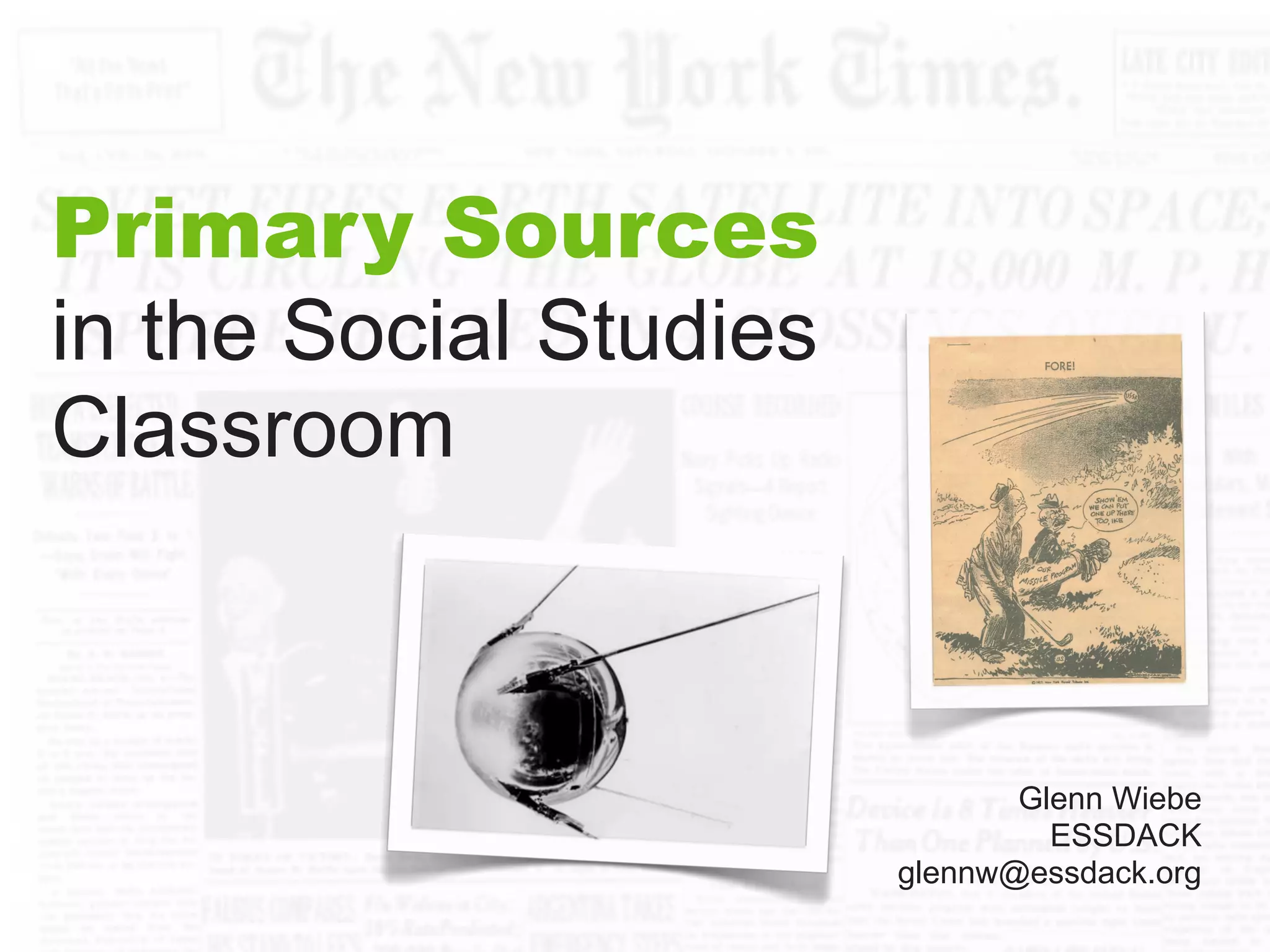 The document discusses using primary sources in the social studies classroom. It provides examples of different types of primary sources like photographs, audio recordings, texts, and objects that can be used. It emphasizes that primary sources encourage high levels of learning. The document provides guidance on developing primary source activities, including starting with the intended learning outcome, scaffolding the activity, and incorporating collaboration. It also lists several online resources where teachers can find primary sources to use in lessons.
